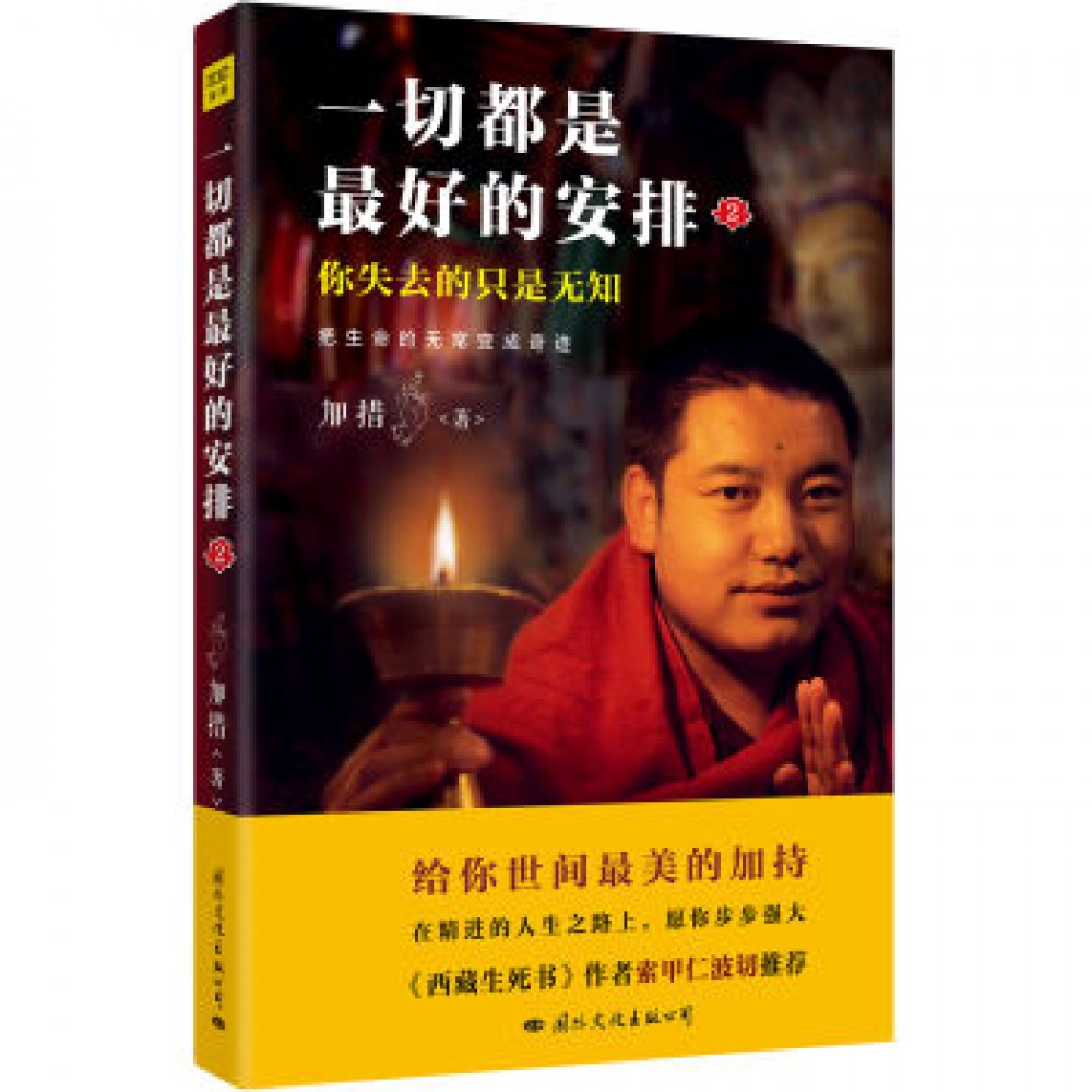 给你世间最美的加持 “一切都是最好的安排”这句话出自我曾出版的一本书。自从这本书问世后,获得了不可思议广大读者的喜爱和力量,感恩多方的支持与准备,如今第二部也将集结出版,我诚挚希望它能给每一位读者带来心灵神奇的加持和力量。 如今在越来越追求物质和科技生活的时代,大多数人缺少了对自身灵魂的关注,以致灵魂是空虚孤独的,这种负面情绪仿佛是一种强有力的传染疾病。生活的进步也并没有带来实质性的幸福,反而越来越多的人感到不快乐,忧伤的泪水越来越多,内心充满了焦虑与不安,由此可见,物质对心灵的改善非常有限。我们非常需要把心中本具的喜悦和自在开发出来。 2500年前,佛陀开示给了人们很多极具加持的神奇咒语。在西藏,当人们有了苦难和烦恼,或想为了自己和他人获得幸福与内心的宁静时,会念诵观音心咒,又或有了压力和困难及想要祈福时,会念诵莲花生大士心咒。我们会念各种咒语,像在《心经》中“揭谛揭谛,波罗揭谛,波罗僧揭谛,菩提娑婆诃”这样能除一切苦的咒语。它像看不见的氧气般真实存在,也像触摸不到的安全感时刻萦绕心间,只要忆念它,它的力量就无所不在。它像珍贵的如意宝,满足人们所有的愿望。所以我非常希望,这些极具神奇的咒语能够延续下来,让佛法的智慧精华凝聚成一个对任何人都具影响力、断除痛苦的神奇语。 “一切都是最好的安排”就是这么一个能化解和消除一切痛苦的有效咒语。这源自于我对《楞严经》中所说“若能转物,则同如来”中所获得的启发。如果一个人无论遇到顺境还是逆境,都能转变成对自己有帮助的境界,无论遇到善缘还是逆缘,都能使之转为好缘,从佛法来讲,这个人一定会有成就。从世间生活来说,如果一个人能在不如意时,以积极的心态面对,从中获得领悟与成长,那么,不论是他的当下还是未来一定都会更加美好。 《一切都是最好的安排》这本书问世后,对很多人都起到了极大的作用。从人们的微博、微信等社交网站的个人签名,再到很多人互相之间所寄予的祝福,很多都变成了这样一个神奇的咒语。 这个咒语,让人们的内心不再纠结,不再执着,也不再追究烦恼的根本,而是学会了活在当下。这是世间富有经久能量的一句话,希望您能常常持有。“一切都是最好的安排”,不仅是答案,也是祝福与祈祷,更是一种最清净的真相,我祈愿它像温暖的光芒,驱散您心中的阴霾。 我深信,每一个人都有机会获得真正的喜乐,因为,一切都是最好的安排,它也是开启我们心灵无尽宝藏的神奇咒语之匙。 加措 2016年2月