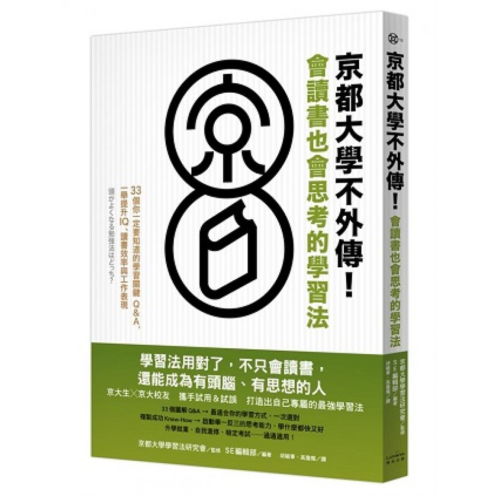 第一章京都大學如何培養出多位諾貝爾獎得主? 想掌握根本的學習力,東大派和京大派,你選哪一邊? 掌握本質的學習方法為何? 第二章聰明人都在做的IQ訓練 Q01 遇到細節疑問該怎麼辦? A停下腳步思考 B先掌握整體概念 Q02 如何鍛鍊思考能力? A獨自反覆思索 B找人討論 Q04有人對你說「照我說的去做」,你該怎麼辦? A 乖乖聽話 B 抱持疑問 Q05 與他人一同學習比較好? A 僅靠自習即可 B 積極地學習會更好 Q06 遇到不擅長的領域時該怎麼辦? A 拓展自己擅長的領域 B 克服不擅長領域 Q07 獲得解決問題的提示後該怎麼辦? A當場記筆記 B稍後再做整理 Q08 遇到難題該怎麼辦? A 不解出來絕不罷休 B找別人一起討論 COLUMN 半年後仍可記得九成內容的學習方法 第三章運用課本、參考書與資料,讓頭腦變得更聰明 Q9 從頭學習未知領域時該怎麼做? A 博覽相關資料及書籍 B 精讀一本基礎入門書 Q10 應該讀哪一種入門書籍呢? A 簡單易懂的入門書 B 超出自身能力的專業大部頭書 Q11要在什麼地方讀書? A 在書桌前正襟危坐地讀書 B在自己喜歡的地方讀書 Q12 應該寫幾本測驗題? A時常挑戰新題目 B重複做同一本測驗本 Q13自己很珍惜的書籍,必須保持乾淨整齊嗎? A 盡量避免在上頭書寫 B盡量地寫筆記 Q14課本的內容要掌握到何種程度? A 總之硬背起來就對了 B 重視內容的理解 Q15 讀完的課本該怎麼辦? A 好好保存 B 立刻丟棄 Q16 上台簡報前要準備什麼樣的資料 A無懈可擊的資料 B簡單的資料即可 Q17朗讀有助於記憶嗎? A不容易記住的內容要朗讀出來 B默讀就足夠了 Q18 如何整理筆記? A 整理得乾淨整齊 B不用勉強去整理 COLUMN 訂定「具體可行」的目標 第四章讓頭腦變聰明的英語學習法 Q19如何在最短的時間內學會說英語? A即使不太正確,但還是盡量開口表達 B著重文法及句子結構 Q20 如何記住英文單字? A 利用單字書來記 B 多閱讀文章,自然而然地記住 Q21要如何讓別人確切指出自己英語會話中的錯誤? A 與日本人用英語對話 B 與英語母語人士用英語對話 Q22 有必要上英語補習班嗎? A上補習班比較好 B去外國人聚集的地方比較好 Q23 要如何提升英文閱讀能力? A閱讀內容艱澀的英文文選 B看自己喜歡的小說,或是聽喜歡的西洋音樂 Q24 有必要考多益(TOEIC)嗎? A 考比較好 B 不考也沒差 COLUMN如何與英文母語人士交朋友 第五章聰明人都有的學習習慣 Q25應該優先閱讀什麼樣的書? A 流行書 B與自身領域或許有關連的書籍 Q26適合學習的時間是……? A早上 B 晚上 Q27工作都這麼累了,還是要努力讀書學習嗎? A 有幹勁時再學習 B 即使疲累仍要每天學習 Q28 學習告一段落的時間點為何? A到結束前都不離開書桌 B按照時間來切割 Q29要如何度過通勤時間? A 什麼都不用做 B有目標地過 Q30要擬訂什麼樣的學習計畫呢? A把讀書計畫表排好排滿 B給自己一些娛樂時間 Q31 何時開始複習才好? A 盡可能趁早進行 B 忘記之後再來複習 Q32有必要考模擬測驗嗎? A應該不斷應考 B沒必要勉強去應考 Q33有截止日期的作業或工作,應該怎麼安排? A 盡可能提前完成 B 截止前一次集中火力完成