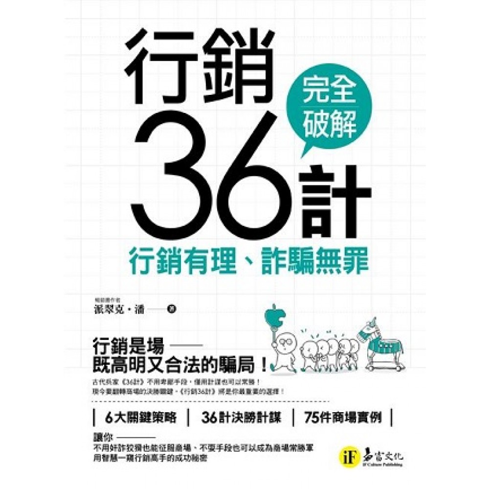 作者序 商品購買從來不是理性的行為, 銷售行為往往都在衝動下產生。 沒有人能想到,2016年最暢銷書, 竟然是著色本。 看似沒有邏輯規則的行銷,其實還是在市場變化裡隱含可循的軌跡。 如何掌握變化,創造變化,收割變化,就是行銷的大學問!誠如行銷大師科特勒(Philip Kotler)說:「行銷就是去發現還沒被滿足的需求,並且設法滿足它。」 我們用淺顯易明的36 計,讓行銷不再虛無漂渺、難以捉摸,為你清楚揭開行銷與市場暗自相合的神奇模式,也讓行銷能準確達成產品銷售獲利的最終目的。 當然,我們大可以用許多哈佛商學院的行銷研究,或用企業管理學說與行銷理論來寫這本書,寫一些可口可樂與百事可樂競爭的標準案例。但那都是漫打高空、不著邊際,甚而只是過度浮誇的表面技巧。 《窮爸爸富爸爸》作者2012 年申請公司破產,是因為行銷過了頭。競爭大師麥克波特2012 年宣告公司倒閉,是因為策略過了時。 行銷兵法寶典《孫子兵法》歷經2,500 年仍屹立不搖,是因為進退有節、用度精準。行銷變化聖經《易經》歷經超越6,000 年仍實用無比,是因為變化莫測、居心純正。 我希望用過去血淋淋但活生生的行銷實務經驗,讓你少走二十年的行銷冤枉路,也為你換取未來豐盈的企業獲利。我也選擇用最清楚的案例解析,為你演繹艱難但卻無比實用的行銷兵法。目的就是透過精確的行銷作為,在正確的時間,獲取最大的市場利益。 行銷、行銷,能行才能銷! 應用、運用、活用36計,才能銷能售! 不管你正嘗試打算創業,還是在企業正準備大展身手,展現高強度的行銷優勢。希望這本書,都能成為你在行銷時,隨時能任運上手的隨身寶典。 兵無常勢,水無常形。 行銷無形,可變萬物。 能因市場變化而取勝者,謂之「神」。 加油! 派翠克‧潘