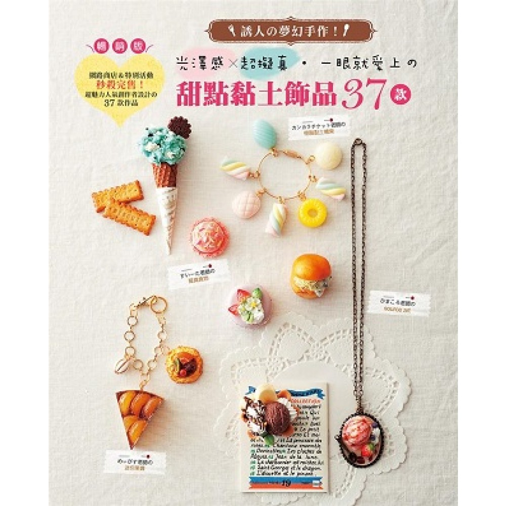 P.4充滿個性的──大家の馬卡龍 草莓花園馬卡龍 Princess✽Macaron 透明寶石馬卡龍 日式風華馬卡龍 P.6粉彩色系甜點飾品 歡樂の點綴小飾品‧三層蛋糕 歡樂の點綴小飾品‧杯子蛋糕 牛奶糖 扭扭棉花糖 甜甜圈 水果糖 P.8香濃の焦糖色甜點 蘋果塔掛飾 堅果法式脆餅 法國焦糖餅&巧克力橘條掛飾 P.9招牌內餡!日式點心吊飾 草莓大福吊飾 櫻花饅頭&紅豆湯圓吊飾 P.10大人感配色の樹脂黏土飾品 霜淇淋圓餅大掛飾 糖果髮飾 糖果項鍊&手鍊 P.12以source art製作の迷你甜點擺盤飾品 莓果鬆餅包包掛鉤 P.13繽紛多樣の彩色糖霜甜甜圈 法式花捲甜甜圈 夏威夷甜甜圈 P.14手工餅乾の點心時間 果醬小酥餅 長條餅乾 扭結餅 巧克力豆餅乾 擠花餅乾 P.16捲啊捲の義大利麵掛飾 海鮮義大利麵&貝果三明治 培根蛋義大利麵&口袋餅三明治 P.17分量十足!漢堡掛飾 魚堡 BLT burger P.18冰淇淋吊飾教學 咬一口!寶石裝飾冰淇淋三明治 脆餅杯冰淇淋裝飾 單球冰淇淋 甜筒冰淇淋 P.13甜點飾品の共通技巧 P.20黏土の處理方法 P.22樹脂黏土の處理方法 P.23製作奶油&醬料の材料 P.24.原型製作 P.26飾品の加工 P.25基本工具&使用方法 P.28裝飾物件の製作方法 P.32 How to make P.63本書の甜點創作者