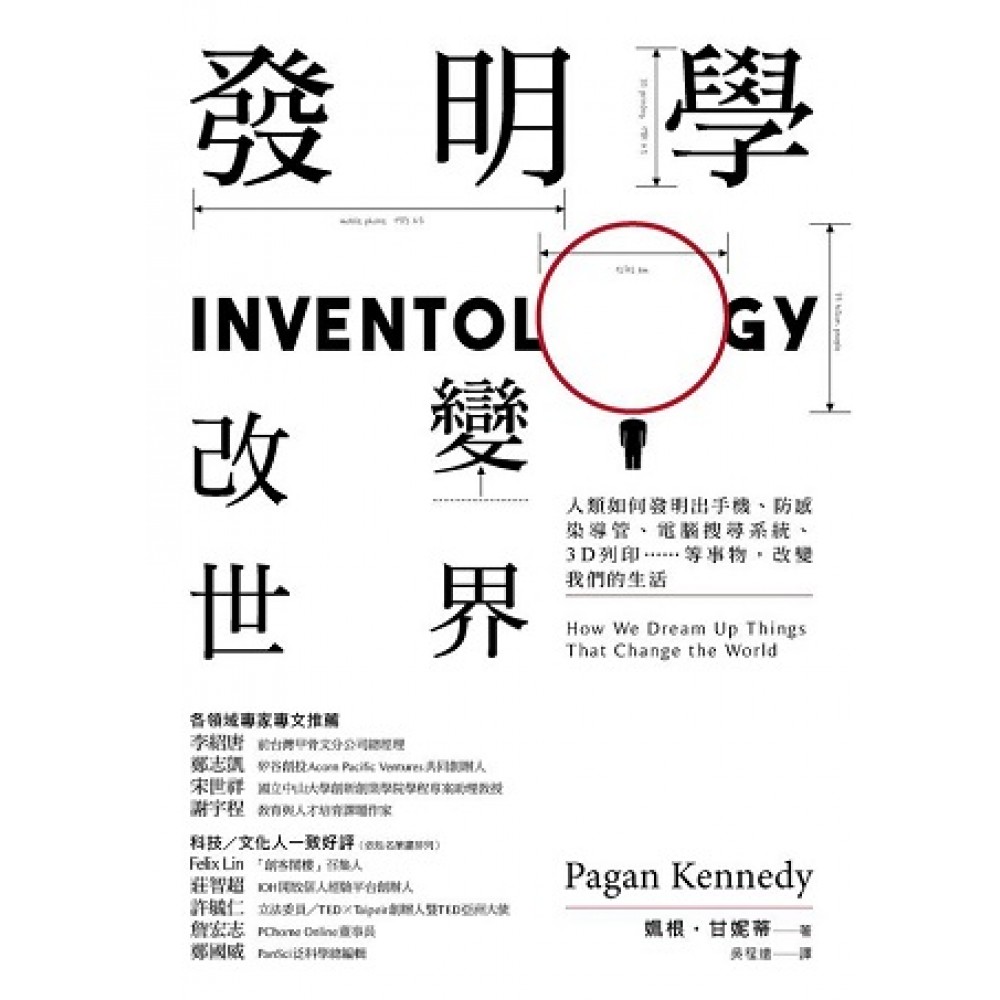 各領域專家專文推薦 李紹唐 前台灣甲骨文分公司總經理 鄭志凱 矽谷創投Acorn Pacific Ventures 共同創辦人 宋世祥 國立中山大學創新創業學院學程專案助理教授 謝宇程 教育與人才培育課題作家 科技/文化人一致好評(依姓名筆畫排列) Felix Lin 「創客閣樓」召集人 莊智超 IOH開放個人經驗平台創辦人 許毓仁 立法委員/TEDxTaipeir創辦人暨TED亞洲大使 詹宏志 PChome Online董事長 鄭國威 PanSci泛科學總編輯 若你想問我創業需要怎樣的條件,可讀讀這本《發明學,改變世界》,先找到潛在消費者的需求,再發明一樣能解決問題的產品,相信有了這樣的產品後,再結合有利的商業模式,你必定會創業有成。——李紹唐 前台灣甲骨文分公司總經理 人在反覆做一件相同事情的時候、在遇見一個難解的問題的時候,就會想要找出一個新的方法,更好、更快、更省力。這種動機是天生的,但現實生活裡,有人創造發明能力強,有人弱。於是不免產生一個問題:發明可以學習嗎?本書作者姵根˙甘妮蒂長期寫文章介紹發明的故事,廣泛的涉獵讓她確信發明有方可循,因此創造了「發明學」(Inventology)這個字眼。——鄭志凱 Acorn Pacific Ventures 共同創辦人 提到發明,我們除了羨慕那些充滿創意的發明家外,是否能有一個具體的方法,讓「發明」重新回到整個社會之中呢?更具體地說,在我看來,我們需要找回「發明學」,以及能讓「發明歷程」能夠運作的友善文化。本書正是以此為目標、帶我們找回發明的價值。——宋世祥 國立中山大學創新創業學院學程專案助理教授 將發明從「拚機率」,變成一個可操作,可評估、可練習的「學問」,是這本書的主旨和重大價值。一個訓練我們「讀熟考古題」的教育,足以讓一個人才變廢材、讓社會與產業集體病危。在目前的情境下,這本書可以說是我們的自救手冊。——謝宇程 教育與人才培育課題作家 本書以全新的觀點闡述了發明的過程,充滿知識和啟發。——Publisher Weekly 「發明」可以成為一門真正的學問,研究者開始研究這主題,老師也在教授這門學問。一些二十一世紀的產物(募資、3D列印)已經打破了新概念和有用產品之間的障礙(金錢、時間),因此創新的黃金時期已經到來。本書清楚描繪了發明家是怎麼思考和創作的。——Kirkus 關於創新的研究,本書觸及其中一項最重要的觀點:如果你系統地探索新的經驗、觀點、人物,以及地點,你很可能就會發現讓人驚艷的創新點子。——The Creativity Guru網站