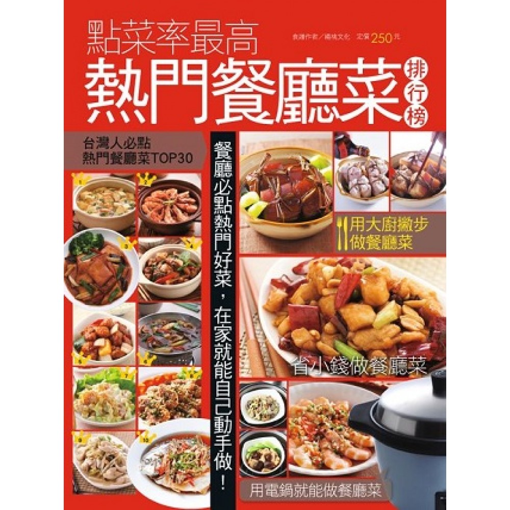 不用懷疑,在家做餐廳菜也可以很簡單! 許多人和三兩好友或家人親戚聚餐,多半習慣上餐廳用餐,每到周末假日,餐廳大排長龍的景象總是隨處可見,揪團聚餐時,發現餐廳訂位已滿,必須排隊一、兩個小時的窘境更是經常發生。 每個人心目中也總會有個必吃的餐廳口袋名單和必點的美食菜單,一上餐廳,一定不免會點上幾道經典好菜滿足味蕾,其實不必和擠破頭搶餐廳才能吃好料,就讓本書告訴大家如何在家做餐廳菜吧! 本書特別為讀者收錄2百多道的餐廳菜,讓大家輕鬆在家做餐廳菜,除了有餐廳點菜率最高的熱門菜色之外,還請大廚揭露做菜小撇步,省點小錢選幾樣食材或是用懶人電鍋,就能輕鬆在家將餐廳菜端上桌,下次聚餐就不用再煩惱找不到餐廳可吃飯囉! 主要內容分為: 餐廳點菜率排行榜top30 用大廚撇步做餐廳菜 簡單食材做餐廳菜 用電鍋就能做餐廳菜