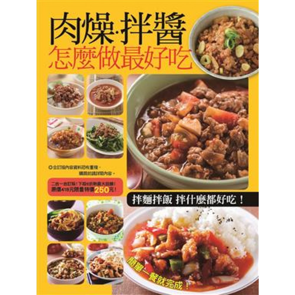 肉燥大百科 [經典肉燥肉醬] 一鍋香噴噴的肉燥肉醬是台灣人餐桌上共同的記憶,不管是直接淋飯、拌麵、入菜都方便又美味。而經典的肉燥與肉醬更是一定要滷上一鍋,本篇收錄16種難忘的經典口味,另外滷肉飯更是經典中的經典,14種香噴噴的滷肉飯一次上桌,千萬別錯過! [家常必備肉燥肉醬] 一鍋肉燥或肉醬,燙個青菜再來碗白飯或麵調,就可以簡單解決一餐,常備一鍋在冰箱想吃隨時都方便又省事!本篇收錄了中式、西式及創意肉燥肉醬,學起來常備不同風味的一鍋,天天吃也不會膩! [肉燥肉醬變身料理] 肉燥除了直接淋拌麵飯之外,最方便的就是拿來入菜了,肉燥本身經過熬煮就是一種調味醬料,簡單的像是直接拌入菜中,或是加點變化用來炒、蒸煮等方式,不但方便且讓菜色的滋味有更豐富的層次! 用途最廣的家常拌醬 肉燥肉醬篇 選好豬肉做肉燥肉醬 做好肉燥肉醬的調味關鍵 傳統炸醬、傳統麻醬、四川擔擔醬、蒜香肉醬、香菇素肉醬、紹子醬、紅燒肉醬、八寶肉醬、榨菜肉醬、筍丁肉醬、XO醬、湖南老虎醬、香滷肉燥、瓜仔肉燥、香蔥肉燥、辣味肉燥、紅糟肉燥、泰式打拋肉醬、南洋蝦醬雞肉、香茅肉醬、雲南麻醬、越式肉醬、檸檬肉醬、咖哩肉醬、義大利肉醬、茄汁蘑菇肉醬、迷迭香蕃茄雞肉醬、茴香辣味雞肉醬、義式牛肉醬 肉醬的保存與加熱 燴炒拌醬篇 魚香茄子拌醬、京醬肉絲拌醬、瓜仔四季豆拌醬、雪裡紅肉末拌醬、碎脯豆豉拌醬、麻婆豆腐拌醬、蔥爆肉絲拌醬、醬爆雞丁拌醬、糖醋卜肉拌醬、豆豉雞柳拌醬、洋蔥肉末拌醬、紹子豆腐拌醬、宮保雞丁拌醬、燴雞柳拌醬、照燒燴肉片拌醬、野菜燴肉絲拌醬、酸菜鴨血拌醬、醋溜魚丁拌醬、蕃茄蝦仁拌醬、玉米小捲拌醬、紅麴蝦仁拌醬、茄汁鯖魚拌醬、鳳梨乳酪蝦球拌醬、鳥蛋燴草菇拌醬、肉醬海鮮拌醬、紅燒牛腩拌醬、蕃茄豆瓣燒牛肉拌醬、蠔油牛肉拌醬、黑胡椒燴牛柳拌醬薏仁牛肉拌醬、窩蛋牛肉拌醬、味噌鮮菇拌醬、木耳絲瓜拌醬、綜合蔬菜拌醬、青椒皮蛋拌醬、馬鈴薯玉米雞拌醬、滑蛋蝦仁拌醬、蒜香魚丁拌醬、三鮮拌醬、廣洲燴菜拌醬、什錦蔬菜拌醬、什錦珍菇拌醬、什錦素香拌醬、洋蔥滑蛋拌醬、奶油雞肉蘑菇拌醬、蕃茄牛肉拌醬、西班牙海鮮拌醬、泰式酸辣豆腐拌醬、西式蘑菇雞肉拌醬 燉料淋醬篇 辣味咖哩醬 淋醬速配物─蛋包 水果雞肉咖哩醬、蔬菜咖哩醬、雞肉咖哩醬、南洋鮮蝦咖哩醬、印度咖哩牛肉、巴東咖哩牛肉、百菇燉肉醬、義式蕃茄燉雞肉醬、紅蘿蔔茸洋蔥牛肉片、紅酒燉牛肉、奶油燉牛肉、義式蕃茄燉蔬菜、黑胡椒牛肉醬、奶油海鮮醬、椰菜青醬海鮮 附錄─家用醬料簡易拌飯拌麵 自製豬油、辣椒油及油蔥酥 豬油拌飯、福州傻瓜麵、沙茶拌麵、青蔥拌麵