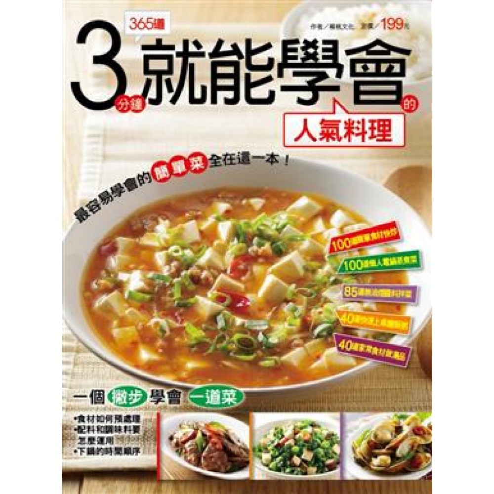 你覺得下廚很難嗎?本書精選的食譜,每一道都是簡單又好吃的家常菜色,能在三分鐘以內看懂學會,按照書中的步驟和小叮嚀自己DIY,你會發現做菜沒有想像中困難。 如果您對自己的廚藝缺乏信心,本書就是為您而設計,不需要複雜的刀工、技法,你會發現很多家常菜色,愈簡單愈好吃,包準你學得得心應手又有成就感。