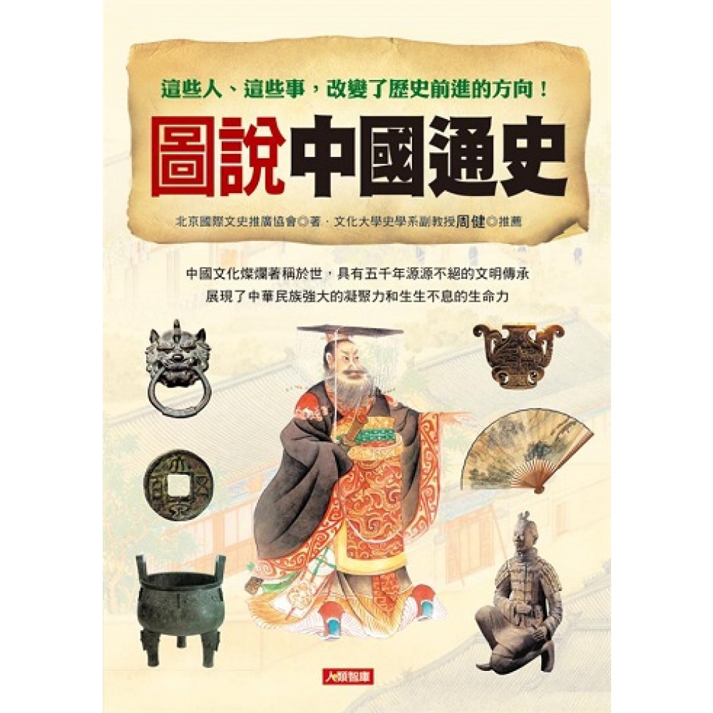 本書精選中國歷史上400件重要大事,從三皇五帝的年代舖演至大清帝國的衰亡,以簡潔明瞭的文字敘述,帶讀者輕鬆遊歷中國五千年的歷史。 具體呈現影響中國歷史的重要事件,力求通透每一個歷史變因,並以深入淺出的筆法增進讀者的歷史知識。 書中附有大量插圖,將各種不同類型的圖片,舉凡繪畫、器物、地圖、照片、模擬圖等搭配於內文之中,並將人物與事件做一連結,使讀者可以更加立體地還原歷史風貌。