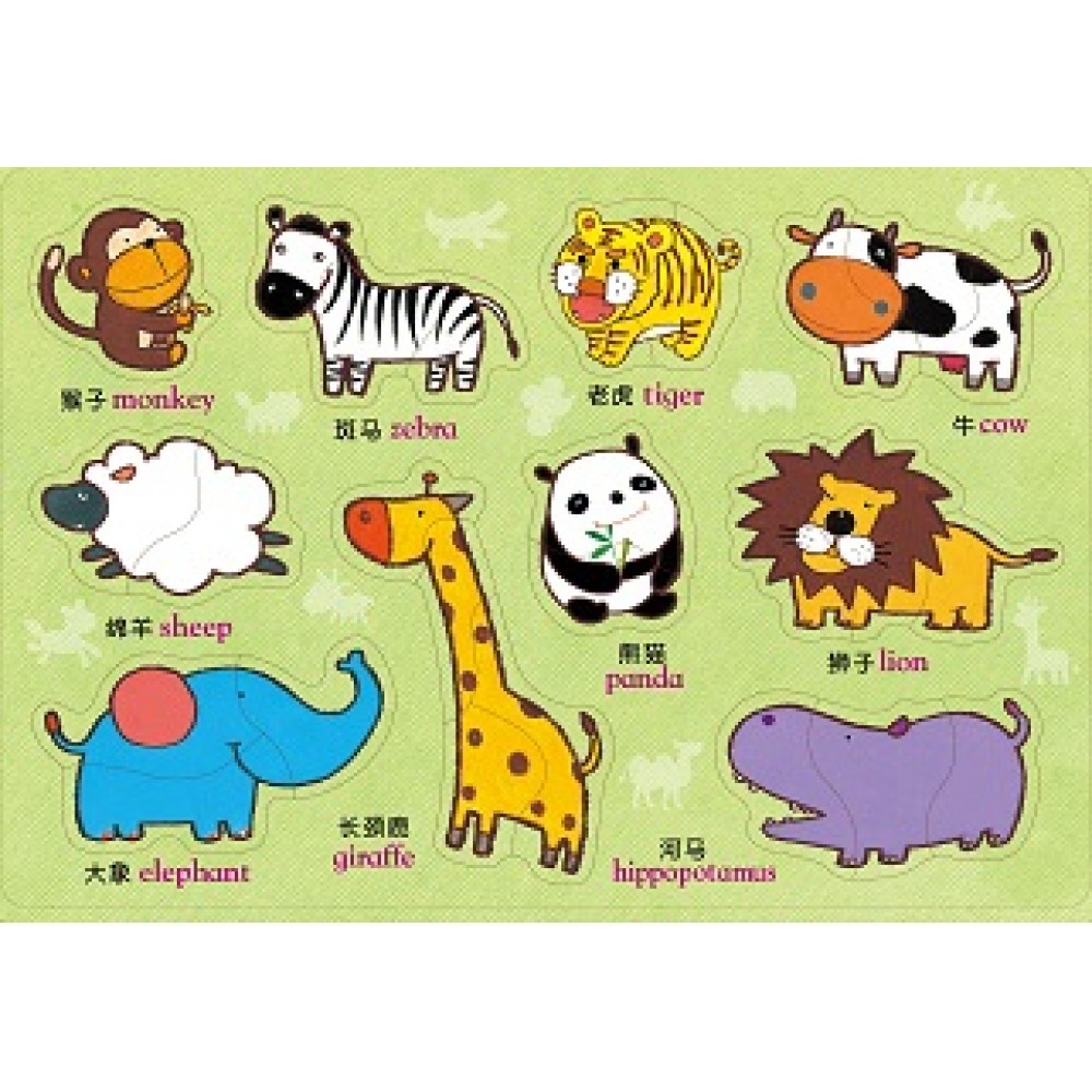 可爱动物嵌入板拼图式的设计,可让孩子训练手眼协调,并建立部分与群体的概念;精心编绘的英文单字和可爱插图,则能加深孩子的学习印象和兴趣,轻松认识可爱动物!
