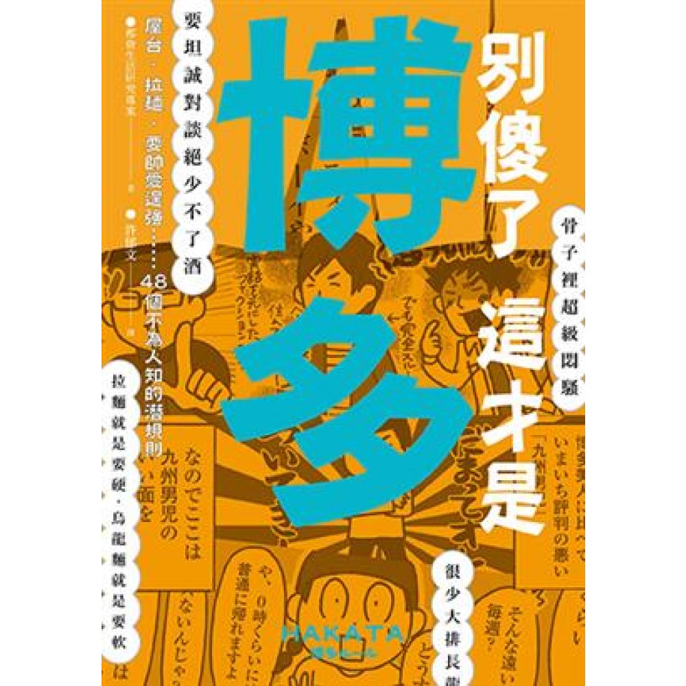 拉麵就是要硬,烏龍麵就是要軟 坦誠對談的場合絕少不了酒 很少大排長龍的餐廳 看似正經,其實骨子裡超級悶騷…… 食物好吃祭典有趣居民對故鄉充滿濃濃的愛 快來認識性格超展開的九州國民吧! 本系列書籍目前已經出版至第5本,加上這次介紹的「博多」地區,讓本系列更形豐富多元。作為「九州國」領導者的福岡博多,其我行我素的作風一定很有看頭,值得讀者一起來探索。 博多有為期2週以上的祭典(而且在祭典期間是放假的),也可以坐船到韓國吃烤肉,稍不留神,還可能醉臥路邊攤;才剛以為自己被豚骨拉麵包圍,沒想到隨即又開始吃起柔軟的烏龍麵……。 闖進博多的外來客不用花多少時間,就會毫不保留地大聲說:「博多,真是太棒了」。 大阪人視東京為「眼睛上面的腫瘤」,對東京總有一股火燒般的敵意;名古屋人則以自嘲的心態,讓那份對鄉土的愛在胸中悶燒;不拘小節(?)的沖繩人,則對日本本州抱著複雜的心思……。而博多人呢?不用懷疑,他們總是天真浪漫地宣揚對故鄉的愛,即便是令人退避三舍的外來客,博多人也會啟動博愛模式,大聲地對他們說:「歡迎來到博多」! 日本人不是以謙遜為美德,只願說客套話的民族嗎? 我們只能說,博多與之前介紹的京都、東京、大阪和北海道都很不像「日本」。西元57年,受贈「漢倭奴國王印」之後,博多這個港口就因紛至沓來的外國使節與貿易商而繁榮,奈良時代,又設立了與諸多外國交涉的太宰府,可說是日本最早與外國文化接觸以及交流的地區。 因為這般文化背景,才讓博多人擁有超脫日本常識的開放主義與快樂主義的氣質嗎? 暫時到此為止。讓我們跳過這些有點小複雜的分析,緩緩地沉入福岡那濃得化不開的博多模式裡。這才是在博多的正確生活,也是與博多人交往的正確方式。