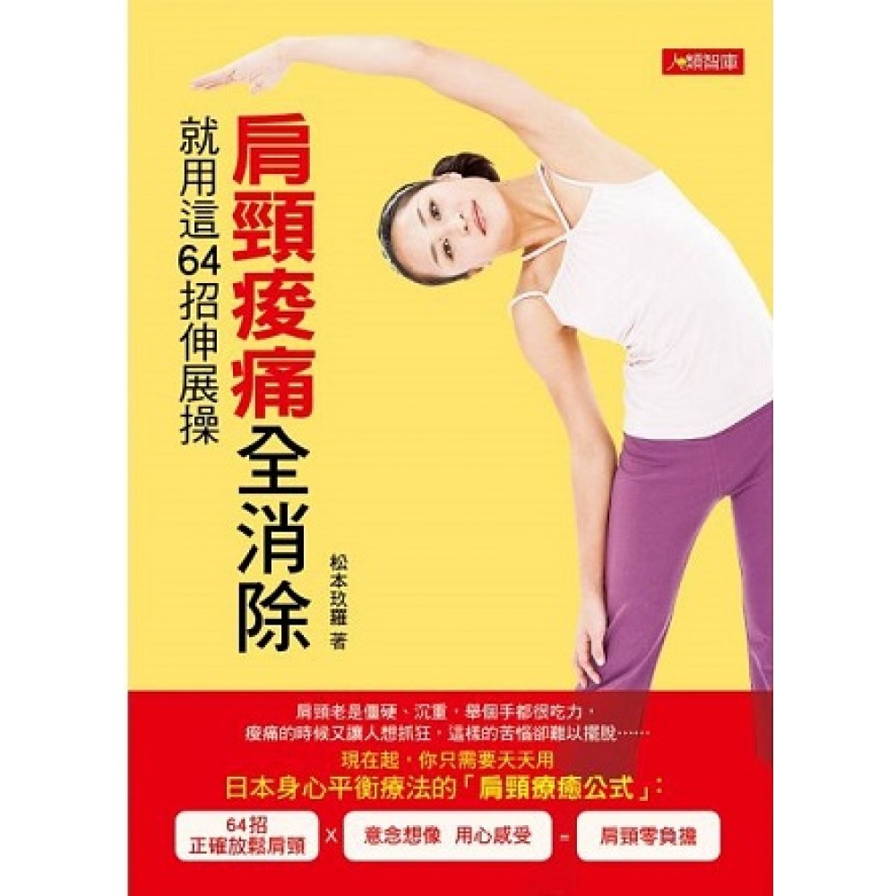 利用意念想像,讓感受更加明顯 我們的身體是有意識的。 對於最佳狀態下,人感覺最舒適輕鬆的時候, 骨骼該處在什麼位置、肌肉該是什麼樣子都十分清楚、並有記憶。 所以,只要我們的身體歪斜了, 身體就會有所察覺,並開始進行復原機制。 而肩膀僵硬或痠痛,便是通知身體啟動復原機制的訊號。 因此在做運動鍛鍊時, 不妨注意感受看看身體哪裡有出現異狀。 如此的做法,可讓身體專注在這個部位, 便能加速復原機制的運作。 靜下心來澈底審視身體一番,也可以獲得不錯的效果! 因聚精會神的集中意念, 喚醒了沉睡於體內的意識。 讓各個細胞也紛紛開始動了起來。 經由自我內在意識與身體的互動過程,就可以加快身體變化的腳步。 所以,只要能夠在每次活動身體時, 配合「意念想像」,專心感受身體, 就會獲得許多令人驚奇的效果。 全書一共介紹了64種消除肩頸痠痛的妙招,讓讀者可以從中選出自己最喜歡、最適合自己身體現況的動作來開始為自己消除惱人的肩頸痠痛。而其中「意念想像」是作者最希望讀者能夠落實在每個動作練習中的,也就是進行每個動作時,將專注力放在每個與所進行動作有關的身體部位上,透過這樣的與自我身體的對話,達到最深層的療癒效果。 本書特色 「啊~肩膀原來可以是這麼輕鬆的呀~」 .松本老師集結瑜珈及身心平衡治療的多年經驗彙整出64個消除肩頸痠痛妙招 — 在這麼多練習當中,你可以先挑自己覺得簡單的動作來即刻體驗,也別忘了選擇讓自己肩膀目前狀態能跟得上的動作喔! .文字說明清楚、配合精美詳盡的插圖解釋 —簡單易懂的文字,並配合豐富清晰的圖示照片,必要時在照片中並有箭頭指示,讓每個動作全都一目了然,進而讓你的每個動作練習都能精確到位,避免遺漏掉任何重點要項,效果自然大大提升。 .隨時隨地都能找出適當的動作練習來放鬆肩頸 — 無論是上班中、或搭車通勤路上,只要覺得肩頸疲勞、僵硬、痠痛,都可抽空即時放鬆肩頸,你會發現不但身體感覺輕鬆舒適,工作效能也會因此好起來。