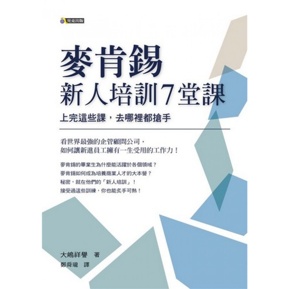 看世界最強的企管顧問公司,如何讓新進員工擁有一生受用的工作力! 麥肯錫的畢業生為什麼能活躍於各個領域? 麥肯錫如何成為培養商業人才的大本營? 秘密,就在他們的「新人培訓」! 接受過這些訓練,你也能炙手可熱! 不用進入麥肯錫,就能學會麥肯錫的本事! 趨勢大師大前研一、讓IBM起死回生的路.葛斯納、重建波音公司聲譽的CEO詹姆士.麥諾尼、《從A到A+》作者吉姆.柯林斯、新生代管理大師唐納.薩爾、暢銷作家勝間和代……這些人之間有什麼共通點? 他們,全都是麥肯錫的畢業生! 這個不論實績或企畫力都堪稱世界最強的企管顧問公司,同時也是許多產官學名人的「母校」。但其實他們的在職時間,平均只有三至五年! 為什麼這些人離開麥肯錫後,能擁有在不同領域活躍的能力? 秘密,就在麥肯錫的新人培訓。 他們所加入的,不只是一間管理顧問公司,而是一間能讓他們在短短數年內脫胎換骨的公司。本書將精華呈現麥肯錫的新人培訓課程,包括他們獨一無二的「工作技巧」與「思考模式」。技巧人人可學,但無法讓所有的問題迎刃而解;唯有同時了解思考模式、面對工作的態度和專業風範,才能真正與眾不同。 麥肯錫的新人培訓這樣教: .麥肯錫的管理顧問除了是追求完美的職人,更是修行僧和藝術家! .問題解決不是打地鼠,重點在於「然後呢?」和「為什麼?」 .分析架構不只能運用在問題解決,結婚、購物、找工作都能用! .想當一名稱職的管理顧問,「宅力」一定要夠! .問真的還是問假的?抓對問題核心,解決方案才能手到擒來! .不要被「應該」局限,而要常常思考「本來」。 現在就開始麥肯錫的「紙上訓練」,讓你成為「懂得找出答案的人」!