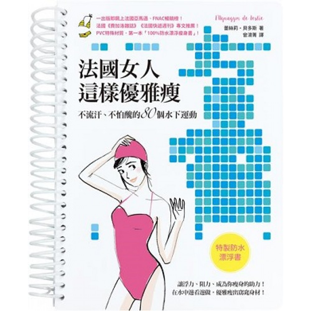 第一本「100%防水瘦身書」!不流汗的最優雅運動法,任何年齡層、不喜劇烈運動或膝蓋受傷者均適用! 法國女人喜歡水中運動,因為不用怕汗流浹背的難看,水的浮力又能使困難的動作變得容易,且水的阻力還能反射性地提升身體代謝能力。NO.1特製防水漂浮書X 80種水中美身操X法式插圖step by step教學,消暑、瘦身、緊緻、按摩,讓每個女生都能在泳池邊看邊做,優雅瘦出窈窕身材。
