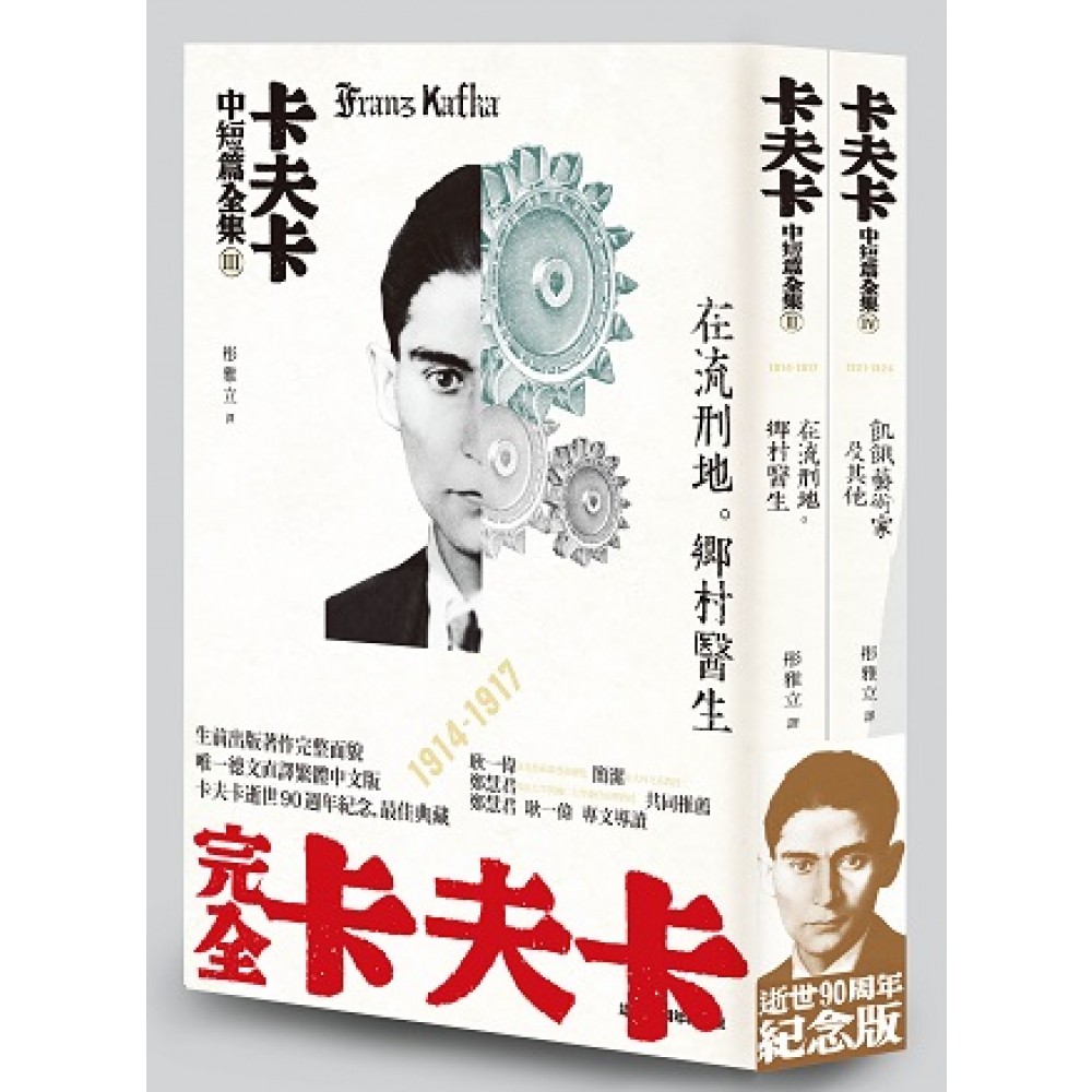 二十世紀影響最深遠、最偉大的作家之一 短篇作品完整面貌,首次由德文直譯繁體中文 卡夫卡逝世90週年紀念,最佳典藏版 臺北藝術節藝術總監耿一偉、政治大學與輔仁大學兼任助理教授鄭慧君、台大外文系教授簡潔、共同推薦 臺北藝術節藝術總監耿一偉 政治大學暨輔仁大學德文系兼任助理教授鄭慧君──專文導讀 二十世紀初最偉大的德語作家法蘭茲.卡夫卡,留下許多膾炙人口的創作,其中多為中短篇,然而,一直以來這些作品並沒有完整且貼切的繁體中文譯本,供我們有系統地深入認識這位偉大的靈魂,僅有〈蛻變〉、〈在流刑地〉與長篇小說《審判》、《城堡》為人所知。在卡夫卡逝世90周年之際,台灣讀者終於等到了。 《卡夫卡中短篇全集》分為四輯,完整收錄卡夫卡生前出版的著作,是目前最完全、最有系統,且最貼近原作風貌的繁體中文譯本。《卡夫卡中短篇全集》依據最新勘訂、還原卡夫卡創作風格的德語版本所翻譯,並且依寫作發表的年代順序編輯,讓讀者對卡夫卡的寫作脈絡與風格演變更有體會。 卡夫卡中短篇全集: III 在流刑地、鄉村醫生 〈在流刑地〉是卡夫卡於1914年執筆的短篇小說,於1919年首次出版。這篇關於身體與刑罰、宰制與被宰制的精闢寓言,也成為卡夫卡的代表作。 《鄉村醫生》是1920年出版的作品集,收錄卡夫卡於1916年起撰寫的14則短篇創作。 IV 飢餓藝術家及其他 《飢餓藝術家》為卡夫卡生前最後一本結集的書,收錄他在1921至1924年間寫成的四篇故事,這段期間他健康狀況已不佳,數度進出療養院。《飢餓藝術家》最後是在病榻上完成校稿的,甚至沒能趕在他過世前出版。 本輯並另外收錄卡夫卡生前曾發表於報章、但未結集出版的十則短篇故事。 ★ 2014年6月3日為卡夫卡逝世90週年 ★ 本出版計畫獲得歌德學院翻譯贊助 ★《卡夫卡中短篇全集——I 沉思、判決、司爐》、《卡夫卡中短篇全集——II 蛻變》已於2014年6月出版 I 沉思、判決、司爐 收錄卡夫卡生前出版的早期作品,包括他的第一本書《沉思》、第一篇短篇小說〈判決〉,以及長篇小說遺稿《失蹤者》(後更名為《美國》)的第一章原型〈司爐〉。 《沉思》收錄卡夫卡於1906至1912年間寫成的18篇短文,陸續發表於報章,於1912年結集出版。18篇短文形式風格不拘,有較長而完整的故事,也有寥寥數行的隨筆。〈判決〉則是卡夫卡於1912年間一夜寫成的短篇小說,被視為卡夫卡寫作風格形塑的早期代表。〈司爐〉於1912年初寫成,後經出版商說服,於1913年作為短篇小說單獨出版。 II 蛻變 中篇小說〈蛻變〉寫於1912年11、12月間,於1915年發表於德國表現主義文學月刊《白書頁》,並在同年11月出版單行本。為卡夫卡最家喻戶曉的代表作,更是現代文學、存在主義文學的重要支柱,啟迪、影響甚鉅。 ★《輯五 生前未發表作品選》將於近期出版