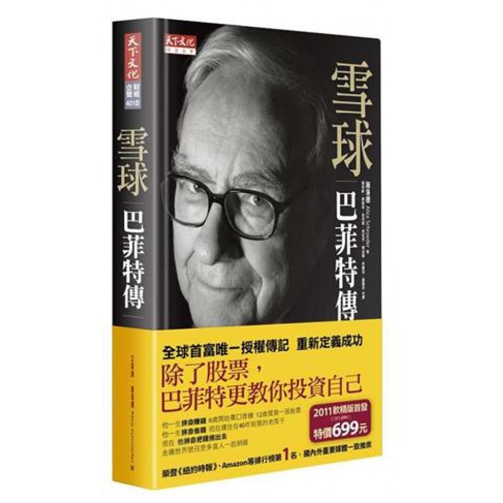 第一部 戳破泡沫 1 隱善揚惡 2 太陽谷會議 3 習慣的動物 4 華倫怎麼了? 第二部 內在成績單 5 佈道的熱情 6 浴缸的彈珠遊戲 7 競爭之心 8 一千種方法 9 送報生的夢想 10 迷途羔羊 11 迷上健身 12 彈珠台與代幣 13 賽馬的法則 14 華頓歲月 15 被拒絕的滋味 16 揮棒落空 17 聖母峰 18 內布拉斯加小姐 19 利益衝突 第三部 競賽開始 20 葛拉漢紐曼公司 21 站在哪一邊? 22 不一樣的路 23 查理.孟格 24 玩具火車 25 風車戰爭 26 黃金乾草堆 27 不智之舉 28 抗貧戰爭 29 服裝的品味 30 噴射機傑克 31 金恩之死 32 容易、安全、有錢可賺 33 歡樂派對 第四部 蘇珊愛歌唱 34 糖果哈利 35 揭發男孩鎮 36 華盛頓郵報 37 報業女強人 38 俄羅斯娃娃 39 巨人的判決 40 改造巴菲特 41 最大的錯誤 42 贏者通吃 第五部 / 華爾街之王 43 法老王 44 蘿絲的家具店 45 道路救援 46 正義騎士 47 華爾街的金童 48 吸吮姆指 49 憤怒之神 50 第三個兒子 51 去他的灰熊 52 火腿三明治 第六部 未兌現的支票 53 精靈的條件 54 寶刀未老 55 最後的宴會 56 不能為富不仁 57 萬物賢哲 58 巴菲特風格 59 蘇珊的冬天 60 九十八樓的人生 61 第七把火 62 繼續滾動 後記