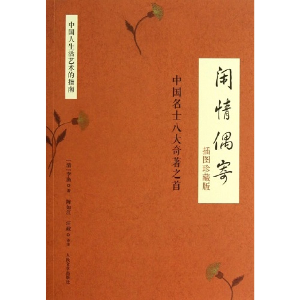 《闲情偶寄》又名《笠翁偶寄》,是明末清初文学家、戏曲家李渔的重要著作之一,是其生活经验和艺术智慧的结晶。它既是一部生活美学、艺术美学的著作,又是一部生动活泼、轻松惬意的小品,在点评衣食起居、娱乐养生之际,鲜活地展现了十七世纪国人日常生活、世俗风情的画卷,堪称休闲百科全书、古代生活艺术大全,无愧名列于“中国名士八大奇著”之首。该书内容丰富而切近生活,以浅白的文言行文,简洁雅致、清新隽永。叙述中时见议论与抒情,趣味幽默、妙语连珠,可谓现代生活美文之滥觞。周作人、梁实秋、林语堂等一辈现代散文大师都曾受教于此书,并对其褒奖有加,而且对我们今天提高生活品位、营造艺术的人生氛围仍有极大的借鉴价值。本书对文中人名、地名、典故以及部分难字做了简要注释,力求通俗易晓;译文以意译为主,不强求字、词、句的对等,着重从整体上表达原作内容。此外,为帮助读者欣赏、理解,随文附有大量精美插图。