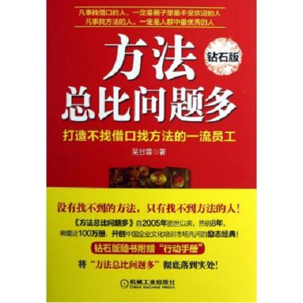 《方法总比问题多(钻石版)》是荣获“中国10大经管团购图书”的《方法总比问题多》的钻石版,除了原书精彩的观点和生动的案例之外,还加上了一个格外具有方法指导性的《行动手册》,将“只要思想不滑坡,方法总比所谓问题多”的理念,彻底落到实处。 当遇到问题和困难时,能否主动去找方法解决,而不是找借口回避,是在职场能否成功和发展的分水岭。《方法总比问题多(钻石版)》不仅倡导“只为成功找方法,不为失败找借口”等优秀工作理念,让人们面对问题改“知难而退”为“迎难而上”,掌握系列具体而管用的工作方法,并将问题转变为机会,从而能打造大批负责而高效的一流工作者。