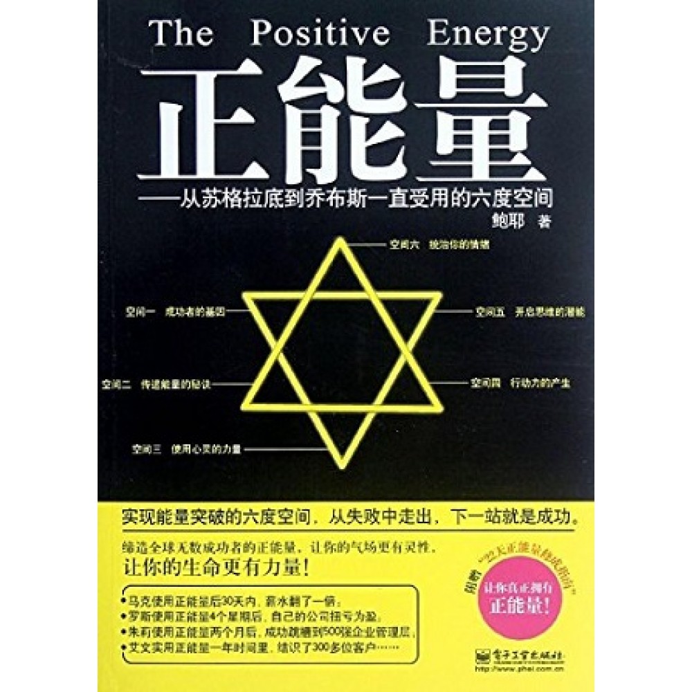 这个世界的自然规律是有正必有负,有太阳就有阴影,有光明就有黑暗。所以,宇宙中充满了正能量(Positive Energy),也同样充斥着负能量(Negative Energy)。当一个星球被负能量吞噬时,它也就不复存在了。所以,我们现在生活的世界,是被正能量支配着的。 我们每个人也是如此,身上都隐藏着正能量和负能量,但大多数的人不知道如何使用这种力量。要知道,使用正能量并获得成功的人不计其出,最早可以追溯到苏格拉底、亚里士多德等哲学家,今天如比尔·盖茨、巴菲特、乔布斯、奥巴马、普京等人,无一不是这种能量的受益者。 《正能量:从苏格拉底到乔布斯一直受用的六度空间》向你介绍了获取并使用正能量的“六度空间”,这六度空间包括:空间一 成功者的基因、空间二 传递能量的秘诀、空间三 使用心灵的力量、空间四 行动力的产生、空间五 开启思维的潜能、 空间六 统治你的情绪等,分别从性格、气场、心灵、行动、思维、情绪等六个方面解释了正能量的运转模式,可以大幅提高你做事的成功率,释放出你的无穷潜能。