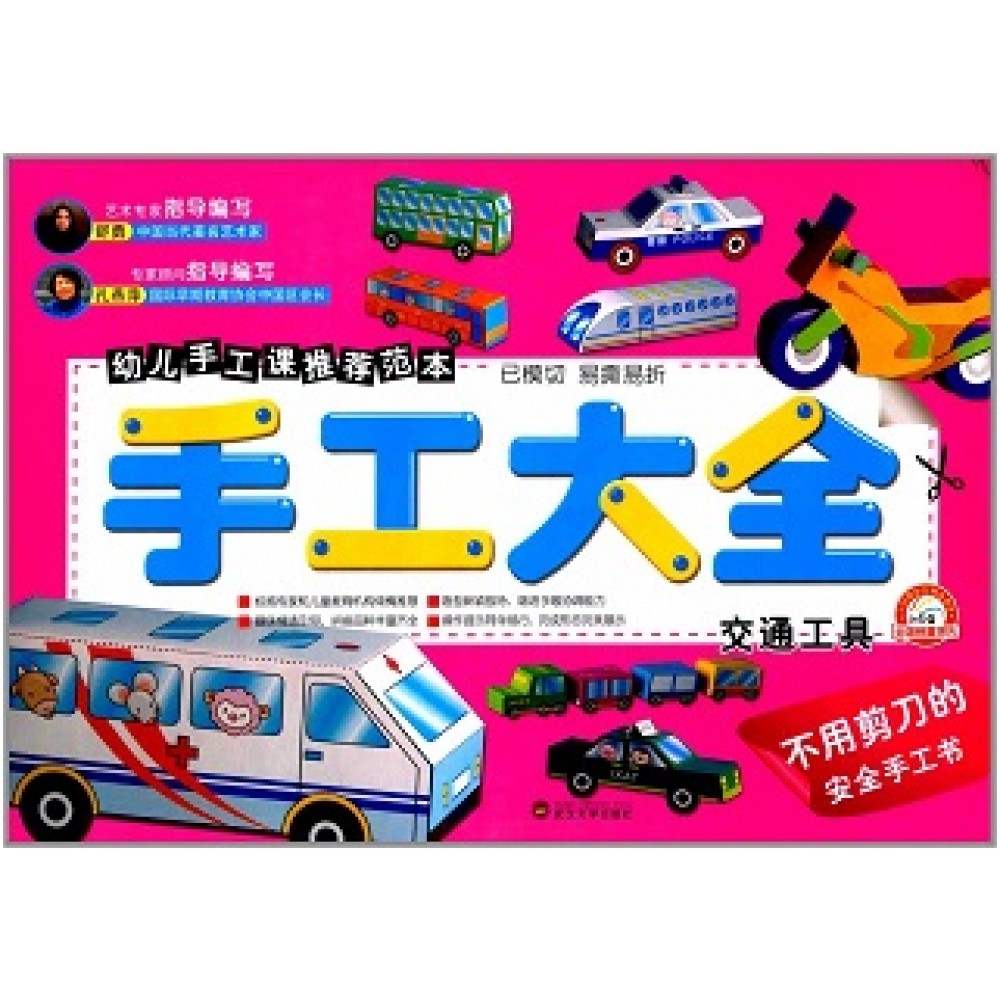 《手工大全:交通工具》精选不同类型的清晰、简单的交通工具图片,单张两个交通工具拼图。内容包括自行车、摩托车、汽车、火车、飞机等多种交通工具。页面包括成图的展示和操作提示等。另外,书中的所有零部件均已切模,不用剪刀便可轻松取下,每个小部件通过折叠、黏贴等步骤,便可以轻松拼装成成品。