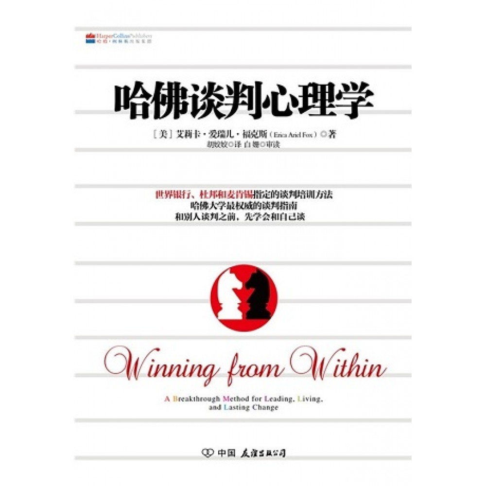 序 言 能为艾莉卡·爱瑞儿·福克斯的《哈佛谈判心理学》这种鼓舞人心的先锋性作品写序言,实在倍感荣幸。我如此开心的原因不仅是因为我与艾莉卡是旧识,相知多年,还因为我亲眼见证了她逐渐磨练钻研这些想法,最终去其糟粕,将结晶清晰呈现出来,为人们介绍谈判内心领域层面的过程。 三十多年前,我和罗杰费舍尔、布鲁斯巴顿有幸合作商讨并参与编纂了《谈判力》一书。我们试图鼓励读者改变对谈判游戏的理解,它可以不再是传统意义上的输赢形式,或许在最后双方都可以受益。这种方法达到的最终效果就是我们俗称的“双赢局面”。可以帮助人们在商务、外交,甚至是厨房的餐桌旁重新了解并实践谈判的技巧。 从那之后的三十年间,我在中介和谈判顾问的工作过程中学到的最重要的一课便是谈判成功的道路上最大的障碍不是对方,无论他们多么难缠。我们最大的障碍是自己。那些真正的困难都掩藏在我们脆弱人性的表层之下,急于做出本能反应——冲动地因为恐惧或愤怒做出本能应激行为。我发觉成功谈判的基础其实是学会如何运用“阳台观望策略”——用一个可以让你将精神状态与情感暂时冷却的全新视角,一种自我控制的方法。“阳台观望策略”是我二十年前在《无法说不》一书中的主要研究论点。 但多年以来,我终于意识到,让人们去利用“阳台观望策略”是一件多么困难的事。而比这更加难以做到的是在与别人产生冲突的同时,还能一直保持“呆在阳台上”。我们每一个人都会难以抗拒地倾向于破坏性的情绪和想法,并且在忘记考虑长远利益的情况下做出冲动的行为。换句话说,我们更乐意“从阳台掉下去”。我的客户和读者们时常会跟我谈到这个问题,并重复地询问如何“呆在阳台上”的方法。虽然基本的那些技巧——比如停止行动,细数现在发生的情况,着眼于利益——都非常有价值,但它们需要在每一天遇到的所有问题的状况下不停地被阐述和强化。 我逐渐越发肯定,在谈判的时候,光在别人身上下工夫能让我们得到的成功是很有限的,想要得到满意的结果,我们需要另一个与之并行的做法来助力。在生活中不仅要选好外部实践行动的走向,更应该选好与之相配合的内心世界的通路。为了得到谈判的胜利,我们不仅仅需要努力说服别人,往往还需要说服我们自己。当然尽管听起来很奇怪,但事实上说服自己甚至比说服别人还要重要得多。如果想要在充满挑战的情况下与外界的人沟通成功,我们需要先审视内心世界,思考自己本身与走向成功的关系。毕竟,如果我们连自己都无法说服,那么我们要怎么去说服别人呢? 这本由艾莉卡爱瑞儿福克斯写的开创性作品就是来填补这部分空缺的。本书让我们以全新的视角思考谈判,所涉及的内容是关于坐到谈判桌之前,甚至是与他人沟通之前就需要思考的内容。它为我们打开了一扇全新的大门——如何与自己谈判。艾莉卡解析了自我谈判的过程,为那些梦想家(商业用语,专指CEO,“首席执行官”)、思想者(专指CFO,“首席财务官”)、爱人(专指VP of HR,“人力资源副总裁”)和勇士(专指COO,“首席运营官”)们创作了一本专业指导丛书。这些家伙都是我们自我谈判的谈判专人,艾莉卡喜欢称它们为“四大成员”,船长在守望者与旅行者提供的宝贵帮助下领导它们。除此以外,本书还用生动活泼的语言,鼓舞人心的鲜活例子清晰阐释了内在谈判的特征以及适用于生活实践的有效方法。 20世纪80年代,《谈判力》一书上市的时候,我们生存的世界正急需一个全新的方法让大家齐心协力共同解决问题。谈判原则就为我们提供了这样一个契机。时至今日,我们的世界有了新的需求,人们需要找到了解自己内心世界的“地图”,以便于在生活和领导他人的过程中做出更加聪慧而又理智的选择。我们需要可行的有实际作用的全套方案让我们不仅可以与别人相互协商达成共识,也能跟自己的内心世界和平相处。内心最深切的愿望往往会为了满足专业性的需求或维护持久的和平现状而不得已被掩盖起来。 本书就是这样一张“地图”。我真心希望此书可以帮助读者们在理解和掌握领导力与谈判技巧的时候,更加高效,更有针对性,得到更令人满意的结果,无论是在公司的办公室,还是公共场合的辩论讲台,甚至简单到不过是朋友与家人之间的对话。我相信,要想从外部彻底改变谈判游戏的基本规则,我们需要先从内部下手。这本来自福克斯的书无疑为我们提供了一个良好的开端。希望你可以喜欢此书,并从中受益。 威廉·尤里 哈佛谈判项目创始人之一 引 言 在我上大学之前,曾有那么一段时间,老妈很担心我的厨艺,因为我不会做她所谓的“任何像样的饭菜”。为此她给我买了一本《烹饪的乐趣》,让我边看边学。她把菜谱翻到她最喜欢的一道菜上,开始教我怎么做。 “书上说要用植物油,但我总用橄榄油。” “书上还说用辣椒,但我总是把它省去,因为菜太辣了。” 就像这样,她一直按照自己的方式继续做下去。 “这儿还说要加盐,但永远别这么干——盐对心脏不好。” 如此反复了几次,我终于忍不住打断了她。 “如果你只按照自己想的去烹饪,那么菜谱有什么意义呢?” 就像以前偶尔在母亲这个亮红色的厨房发生过的那样,路易斯福克斯女士再一次把她的智慧潜移默化地传递给了我。 “听你老妈的话没错。