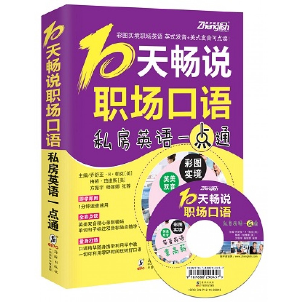 《10天畅说职场口语》分为10天的内容,包含58个话题,每一个话题的场景都经过精心挑选,诚邀资深外教执笔编写,具有实实在在的学习价值。每一天分为早、中、晚三个时间段,每一个时间段选取了一到两个主题,每一个主题都让你循序渐进、由简入难地进入学习状态。根据内容的不同,还配了相应的图片,冲击你的视觉,加强你的记忆。是为每一位职场菜鸟变身为职场英语达人量身定制的口语书。 基础词汇、必备基础句和情景对话全都配备标准的英音和美音两种读音,只要用点读笔轻轻一点就能听到地道的发音,不仅让你轻松分辨出英美发音的区别,避免两种发音混搭造成的尴尬情况,而且还可以根据你的喜好,灵活选择想学的发音,一本书轻松搞定,再也不用为发音问题而苦恼。 取材广泛,内容全面,从词汇、句子、对话、文化的方方面面让读者细细体验职场英语的奥妙,畅游职场英语之旅。