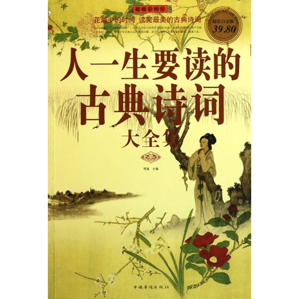 古人说,不读诗词,不足以知春秋历史;不读诗词,不足以品文化精粹;不读诗词,不足以感天地草木之灵;不读诗词,不足以见流彩华章之美。 中国是一个“诗歌的国度”,古典诗词是中国传统文化的奇葩,是我们民族文化遗产中极为珍贵的一部分。早在3000多年前,我们的祖先就创作出了以“诗三百”为代表的优秀诗篇,此后每个历史时期,诗歌创作都结出了丰硕的成果,其中不少名篇佳句脍炙人日,传颂至今。 这是一本能让你花最少的时间读完最美的古典诗词的经典之作,为你达到“腹有诗书”的境界提供一扇方便之门。书中收录了1000多首在思想上和艺术上具有很高成就的古诗词,分为“古歌谣”、“诗经”、“楚辞”、“汉魏南北朝诗选”、“唐诗”、“唐、,宋词”、“元曲”、“宋、元、明、清诗”、“元、明、清词”等9个篇章,包含了各个时期著名诗人和词人的代表作,比较完整地反映了我国古典诗词的全貌。 为了帮助读者更好地理解原作,《人一生要读的古典诗词大全集(超值白金版)》还增设了相关辅助性栏目,并在书中选配了近千幅契合诗意词意的图片,给读者带来视觉享受的同时,也扩大其想象空间。你需要做的只是跟随《人一生要读的古典诗词大全集(超值白金版)》走入古典诗词美丽清新的世界,感受至美意境,体验诗情人生。
