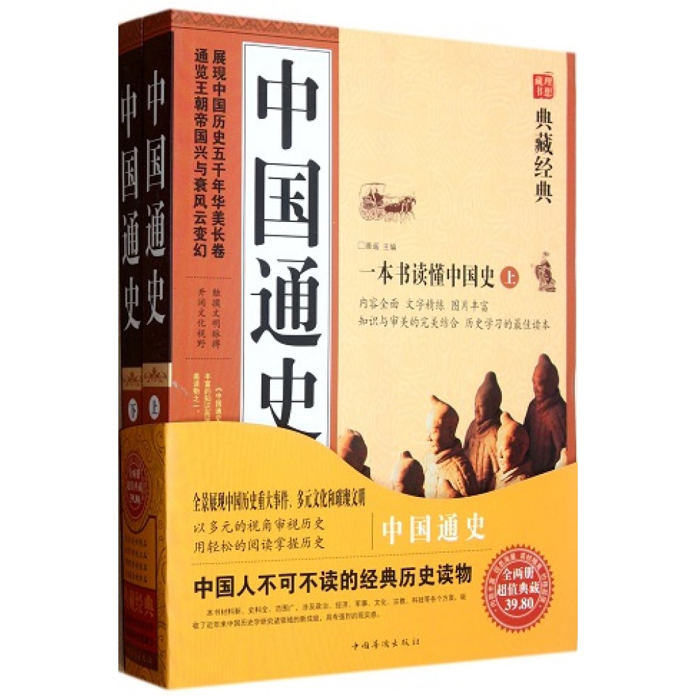 中国是一个拥有五千年灿烂文明史、充满生机与活力的泱泱大国,要了解中国的发展历程,就不能不了解历史,就不能不掌握必要的历史知识。对于我们每个人来说,只有掌握了历史史实背后所蕴含的深厚底蕴,才能增进对历史乃至现实的解读与把握,才能在新的挑战面前与时俱进,适应社会发展的潮流。 《中国通史(套装上下册)(超值典藏)》共两册,分为华夏源头、中原争霸、九州一统、离析与交融、乾坤变幻和王朝更迭几大篇章,以时间为序,系统介绍中国历史上的重大事件、风云人物、辉煌成就、灿烂文化等,完整地勾勒出中国历史演进的基本脉络和各时期文明的发展历程,为读者提供最想知道的、最需要知道的、最应该知道的历史知识。帮助读者从宏观上把握中国历史,进而掌握历史发展的内在规律。同时,书中还设置了相关链接等知识板块,简要补充了一些与文章相关的政治、经济、文化、科技等方面的知识。这些内容或纵向深入,或横向延展,都以方便读者理解中国历史为出发点。编者还精心选配了数百幅内容涵盖面广、表现形式丰富的图片,包括出土文物、历史遗迹、战争示意图、名人画像等,与文字内容互为补充与诠释,使读者仿佛置身于一座真实立体的历史博物馆,更加直观地了解中国历史。