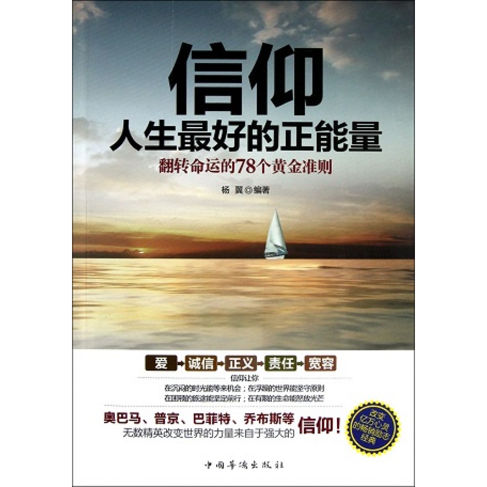 《信仰人生最好的正能量:翻转命运的78个黄金准则》以五个核心信仰:爱、诚信、责 任、正义、宽容,来说明人生最需要 的五种礼物,如果你不满意现在的人生,那你一定需要充满信仰的人生观,它们可以帮助你翻转命运;如果你对现在的人生感到满意,也需要充满信 仰的人生观,它们会让你的生命更加光明璀璨!一起来翻阅《信仰人生最好 的正能量》吧!