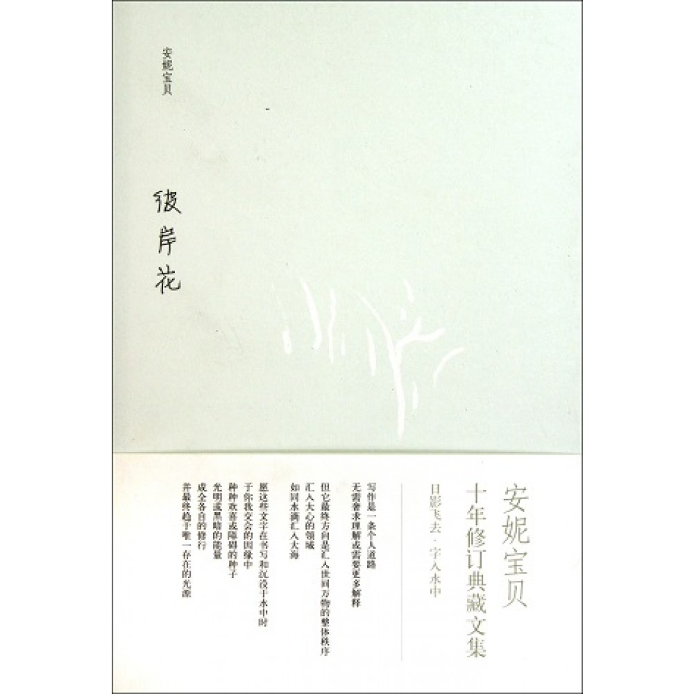 《彼岸花》是安妮宝贝的第一部长篇小说。 《安妮宝贝:彼岸花(十年修订典藏文集) 》以都市情感为题材,以现实情节和电影故事叙述两条线索,交错发展。时间跨度大,人物和城市涵盖面众多,保持了属于作者的独特的美感和苍凉。整部小说有一种电影般光影交织的诡异幻觉。主体共分为“乔”“南生”“散场了”三个大部分。乔是一个独自在上海生活的年轻女子,隐没了历史,以写作为生。乔邂逅在咖啡店当班的女孩小至,在经历过生活的磨损之后两个人彼此失散。开音像店的卓扬是乔在这个城市里认识的第二个朋友,她以为他能够带给她温暖的家的概念,但无疾而终……第二部分“南生”就是乔的电影故事。在第三部分“散场了”里面,讲述乔在创作小说的过程中,遭遇生活里再次的颠簸起伏,渐渐感觉疲惫。她和森去了东海上的一个小岛……