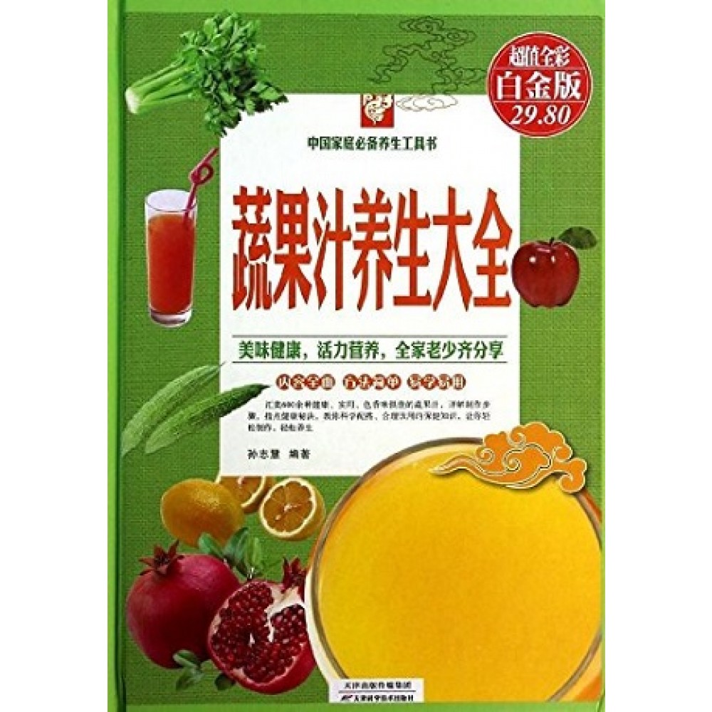 《蔬果汁养生大全(超值全彩白金版)》汇集600余种健康、实用、色香味俱佳的蔬果汁,详解制作步,骤,指点健康秘诀,教你科学配搭、合理饮用的保健知识,让你轻松制作,轻松养生。 内容全面:汇集600余种健康、实用、色香味俱全的对症蔬果汁,详解制作方法,并介绍营养成分、养生功效、果汁热量、可预防的疾病。内容简洁、实用、方便,教大家利用蔬果汁来对症养生。 功效齐全:涵盖改善失眠、便秘、贫血、高血压、骨质疏松、消化不良等常见疾病的蔬果汁;清除体内垃圾,帮助排毒养颜的蔬果汁;适合经常熬夜、工作压力大、饮食不规律等亚健康人群的蔬果汁;适合四季调养的蔬果汁… 方法实用:书中的每一款蔬果汁,都有详细的步骤讲解,取材方便,制作简单,人人能做,简单易学。可指导你轻松制作出色香味俱佳的营养蔬果汁,满足全家人的健康需求。 适用广泛:无论是朝九晚五的上班族,课业繁忙的学生族,还是代谢减缓的中老年人,急需营养补给的孕妇、产妇,抑或是生活不规律的开车族、在外就餐族,都能找到适合自己体质的蔬果汁。每天一杯,给生活注入自然元素,时刻保持活力,远离疾病。
