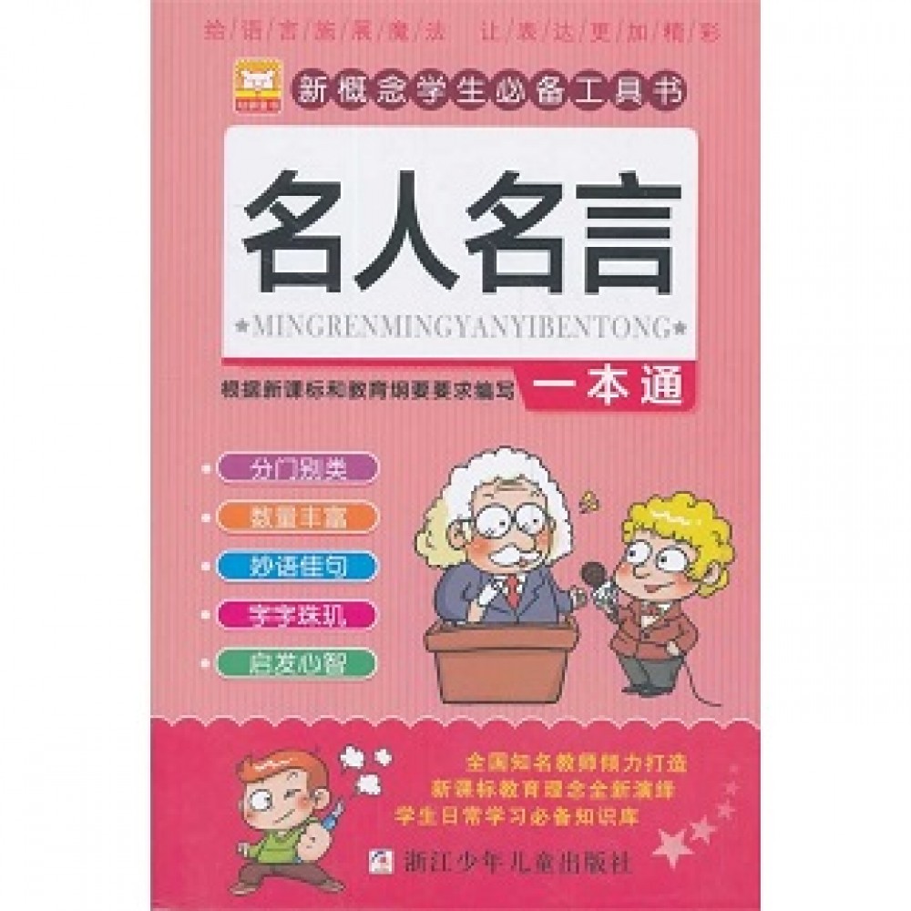 《新概念学生必备工具书:名人名言一本通》按新课标对学生的要求,选出内容健康、应用广泛的名人名言,编辑成书,并配上注解、例句、典故和插图等,让学生在直观、愉快的阅读中理解和掌握它们,快速增强语言表达能力,提高写作水平。融知识性与趣味性于一体,既可在休闲中阅读,也可作为工具书在学习与写作中查阅,是学生日常学习不可多得的“文库”与“智库”。语言丰富多彩,有的俏皮,有的生动,有的优美,有的智慧。不光是学习的工具,更是我们了解古今中外文化的窗口。一个词、一句话、一首诗、一个故事,都展示着特殊的历史文化。在这里,筑有知识大观园,存有名人小档案、小趣闻,收录历史掌故、各种小故事。打开眼界,就从这里开始吧!
