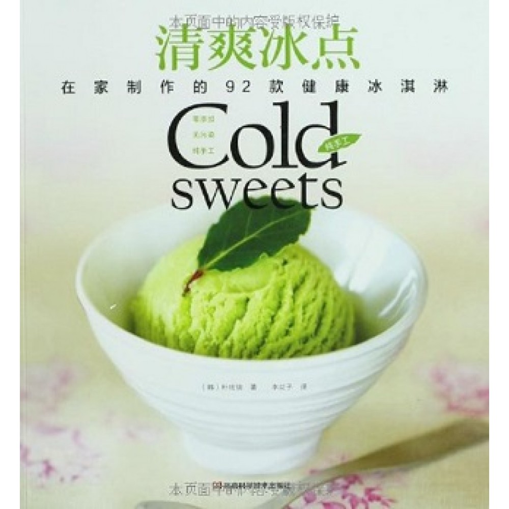 《清爽冰点:在家自制92款健康冰淇淋》为韩国作家所著的在家制作健康冰淇淋秘诀大公开,根据其切身经历,介绍如何选用最健康、最新鲜和最家常的食材,用最简单、零添加的方式,自制90余款各式冰淇淋,酸奶冰淇淋、思慕雪、冰沙、雪芭、意式冰糕及各种加入不同坚果、不同利口酒或水果的冰淇淋,或与薄脆焦饼搭配,或与华夫饼搭配,款款都让人食指大动,让您和家人朋友在这个夏天清爽无比。全书图片均系作者精心实物、实景选拍,清新自然,一书在手,尽饱口福、眼福。