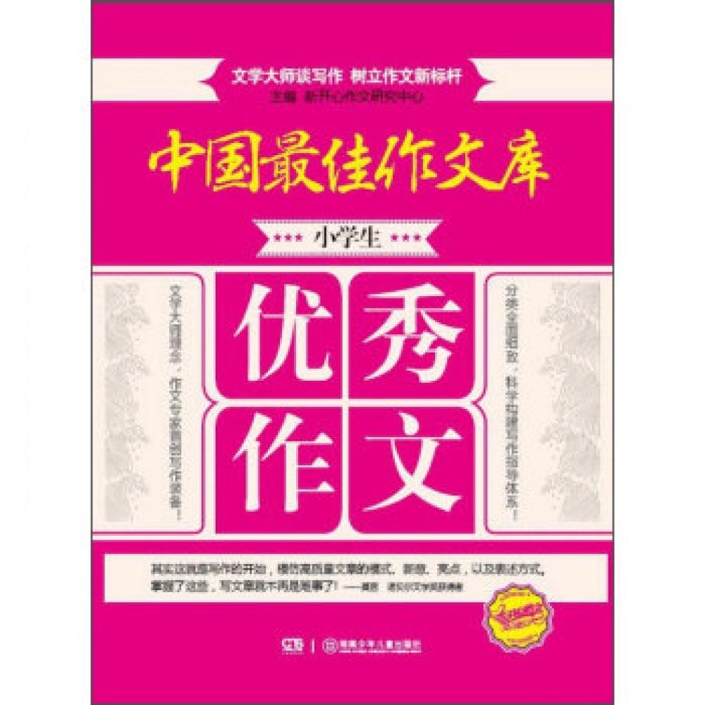 《中国最佳作文库:小学生优秀作文》从近期全国各地的小学生习作中精选优秀范文,由作文教学经验丰富的老师进行细致、全面的评点,并进行相应的方法指导等,内容丰富、详尽,指导细致、贴心,旨在为广大小学生提供一个全面的关于优秀作文的作文库,让他们通过对这本书的阅读学到作文方法、学会借鉴,从而帮助他们提高自己的作文水平。