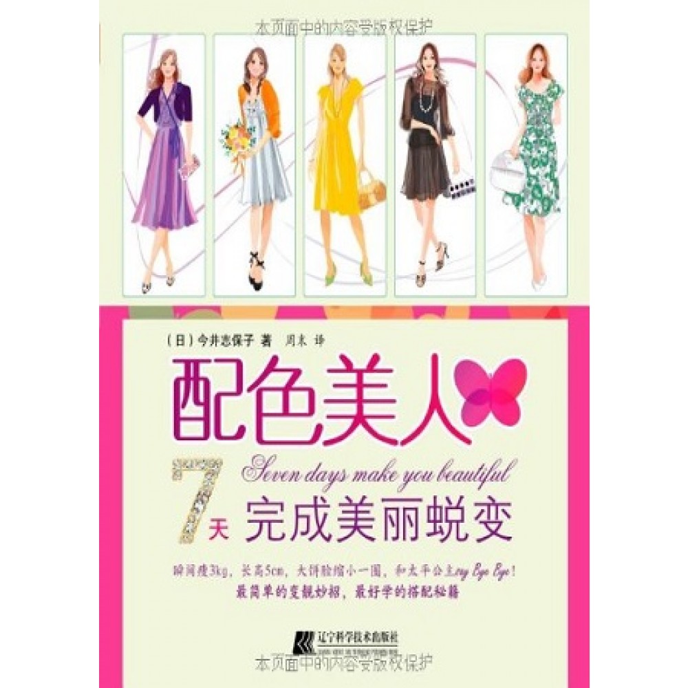 《配色美人:7天完成美丽蜕变》通过七节色彩搭配课,帮助读者从中找出适合自己的美人色,并将它们恰到好处地运用到日常的服装、妆容和装饰品中去,就能象破茧而出的蝴蝶,有一个脱胎换骨的改变。从此绽放自信的笑容,将自己最具魅力的一面展现出来,并给人留下深刻的印象。 第一天,寻找让你更漂亮的美人色;第二天,散发美人气质的服饰搭配;第三天,追求服饰和妆容的合谐搭配;第四天,俘获女人芳心的装饰品;第五天,用VIP颜色完成华丽变身;第六天,用“视觉魔法”塑造理想身材;第七天,做完美的家居配色达人。