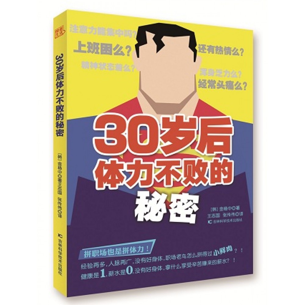 我的健康年龄是几岁? 韩国男性在结婚或进入职场以后,也就是说在30岁左右的时候,体重开始增加,心血管疾病和糖尿病等疾病开始出现。这就是所谓的代谢综合征释放的“健康红灯”信号。代谢综合征是指有助于预防心血管疾病的“优质胆固醇”数值下降,同时血压、血糖、中性脂肪数值上升的现象。 韩国保健福祉部和国民健康保险公团对2010年健康检查资料和体检人诊断资料进行了分析,结果表明,进行健康体检的30岁以上的人群中,代谢综合征患者占25.6%。据调查,对代谢综合征的关注度也达到了50.1%。每两人中,就有一人出现了健康问题。导致代谢综合征发病率上升的原因有:体重的变化、尿酸数值的上升、过度饮酒和压力等。尤其是一年之内体重增长超过1千克的人,与一年之内体重增长不超过1千克的人相比,代谢综合征 的发病率要高4倍。 专家强调说,最近一段时间,代谢综合征不仅在我国,在全世界范围内都有发病率上升的趋势,在30多岁的时候,如果出现了代谢综合征,或者出现了诱发代谢综合征的因素,应控制体重增长,改变生活习惯。 外表看上去健康有活力的工薪阶层人士,体内却滋生着疾病。我们认为自己很健康,但是一些不好的生活习惯,随时危害着我们的健康。我们的实际年龄和“健康年龄”是不同的。良好的生活习惯会让我们的健康年龄低于实际年龄,而不良的生活习惯则相反。 本书的目的也在于此,通过对自己目前生活习惯的评价,寻找适合自己的健康管理方法。本书以时间表的形式,整理了一些容易付诸实践的健康习惯和法则,让你在繁忙的工作中维持健康。有些健康习惯大家都知道,但是很难付诸实践,本书就想方设法帮助大家养成这些习惯。除此之外,本书还纠正了一些错误的健康常识。还包括了保护家人健康必备的健康常识。与担心健康相比,忽视健康更可怕。“我啥事儿没有”,让我们抛弃这种想法吧。我想再次强调的是,每两名职场人士中就有一名出现了健康问题。还有一个无法否认的事实,没有永远年轻和永远健康的人。 在健康管理问题上,不要感到羞涩,也不要在意别人的眼光,失去了健康,就等于失去了一切。不要为了应付上司、应付工作而疏忽了自己的健康,职场、上司、同事,他们都不会对你的健康负责的。 任何人都可以变得健康。让我们一步一步地养成健康的生活习惯吧。每一天都健康地生活吧。每一天健康,每个月都会健康;每个月健康,每一年都会健康;每一年健康,一辈子都会健康。只要稍作努力,你就会感觉到自己的身体正在发生变化。你会变得更有自信、更有活力。还有什么比健康的生活更让人高兴的呢?健康每一天,健康一辈子!健康每一天,人生更多彩!