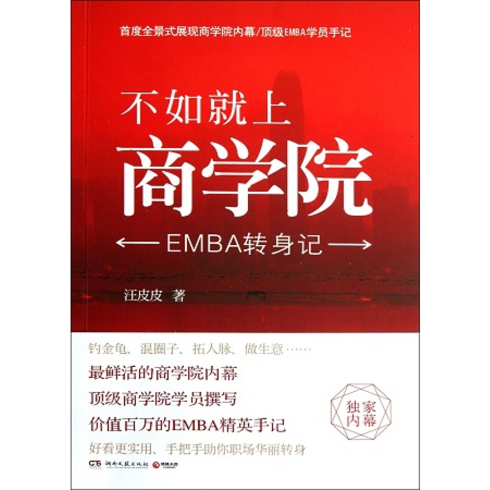 趁活着,好好年轻 想过很多次,自己将以如何的表情和心情,开始动笔写这篇缘起。 必修课即将结束的那个冬天,我们还没有开始搬到北京新校区,我和汪汪在一楼的西餐厅,开始商量写一个好玩的故事,一个关于我们这两年EMBA的故事。又过两天,我们开始毕业课题的准备,想想写书这么好玩的事情,也算新意思,于是扯一张文化原创产业的虎皮,指导教授很支持,就算开了题。 商战模拟、异地游学、慈善义举、集钱投资、大场面联欢……都是EMBA学员的必经之路。既然是讲故事,其间就不乏斗富、勾兑的俗套。人在世间,都吃五谷杂粮,都是饮食男女。不亮丽的八卦并不是这个圈子独有,自然也不会免疫。另一面来看,又多少年未曾有过把酒当歌的豪情?人到中年的真性情,才真正让人难忘。 毋庸讳言,正能量应在人生历程中唱主旋律。这些在外人看来是大多赚了钱来混文凭的大佬们,之前的背景,不乏高学历和名校。时代毕竟不同了,在某种程度上公平是存在的。 真实的商学院校园里,有没有左丹丹那样的绝色佳人?你要问我,我说有。因为同窗两年,搀着浓浓情谊的眼光看去,女同学们个个秀外慧中,羞花闭月。那书中的御姐呢?“扫描仪”呢?那些暧昧和骗局呢?呃,允许我说句场面话——人生变幻莫测,情节纯属虚构,雷同纯属巧合,欢迎对号入座。 好的商学院EMBA课程和氛围,绝对值回票价。虽然学富五车的教授们已经足够深入浅出,文科生出身的我们,还是吃了些苦头。本着苦中作乐的态度,试着把十之未过一二心得分享,算是给没有进过商学院却希望了解商学院的诸位点点不专业的剧透。 初稿前七章曾在毕业论文答辩时做成样书露过面,一时间激起轩然大波。校友们有代表官方撂狠话的,有晓之以理、动之以情的,有深明大义、给出中肯意见的……林林总总,排山倒海。本来想解释,不过是两个爱调侃的女生希望故事好玩,后来也确实尽力解释过了,效果或许不尽如人意。姑且结论是,我们都热爱我们的生命体验,但大家爱的方式不同,希望各样的方式都得到应有的尊重。毕竟,能有勇气拿自己开涮,是个境界。 初稿本来就完成的拖拖拉拉,又经过几易其稿的修改,一晃过去了两年。总有带着难以名状表情的同学问,你们那小说怎样?标准回答是,编辑在看稿。而看过稿的编辑也大都用难以名状的目光扫向我们,他们问,这里面有太多主角跟头绪,可否把故事主线集中一些?我挠头,哦,好吧。 后来,终于编辑总监悲天悯人地望着我们说,不然故事就这样吧,左一块、右一片的,也算是一种特色。本来你们也是碎片时间集中上课的,估计也就因为这样,故事变得碎碎的。还有每个章节前的那个商学院笔记,也还算有趣。我感激涕零,高呼这位善解人意的大编为妇女之友,因为要再改下去,姐绝对更年期提前。 生活在继续,到被责编勒令写这篇东西的时候,这捆人又发生好多新鲜事——比方说段子多多的微博、微信,比方说裸奔,比方说后EMBA……都好玩,不过要是都再都加进来,编辑就更崩溃了。 五月份报名参加坊间著名的徒步活动,死皮赖脸地挤进亲友团体验组,终于实践了一把怒放的生命,损失是一片小脚趾甲。只是浅尝辄止的一天,却给我很多自得其乐的回味,这是一种年轻的存在感——跟我们两个人头碰头写故事的感受相去不多。 就这么定了。趁活着,好好年轻。 汪皮皮 2012年9月13日