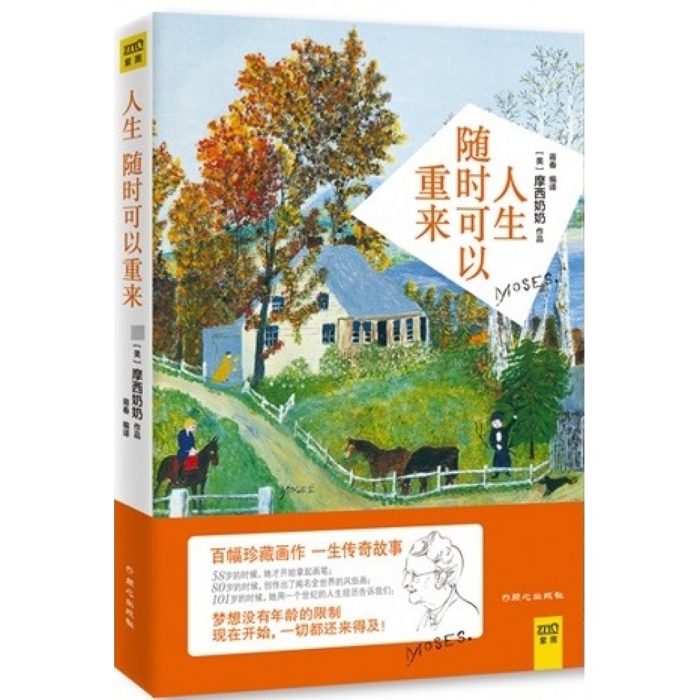 摩西奶奶(Grandma Moses,1860年9月7日—1961年12月13日),本名安娜玛丽罗伯森摩西(Anna Mary Robertson Moses),是美国艺术史上大器晚成的典型代表,风靡全球的风俗画画家。 58岁,从未受过专业绘画训练的摩西奶奶,在机缘巧合下开始画画,并且越画越好; 78岁,一位旅行收藏家在一家杂货店发现了她的画,并将她的画介绍给了全世界,数月后取得激动人心的成就。 80岁,在纽约举办个展,之后作品畅销欧美; 89岁,被授予美国“女性全国新闻俱乐部奖”,并得到了哈里S.杜鲁门总统接见; 96岁,受艾森豪威尔总统内阁委托,为纪念他就职三周年绘画; 100岁,启蒙了后来成为世界一流文学大师的日本作家渡边淳一;摩西奶奶的生日作为纽约州的“摩西奶奶日”。 101岁,摩西奶奶去世,被当时的肯尼迪总统誉为“深受美国人民爱戴的艺术家”。 在50多年的绘画生涯中,摩西奶奶共创作了1600多幅作品,其中二十多幅是在过完100岁生日之后所画。她登上过美国最知名的杂志《时代》《生活》的封面,作品在著名的MoMA博物馆展览,并被大都会博物馆与白宫收藏,几乎在全世界都办过画展。在她过世之后,美国邮政总局还为她发行了个人邮票。摩西奶奶的画作及个人传奇故事影响遍及世界各地,启迪和鼓励很多人。 摩西奶奶对世界的影响仍在持续,希望这本书也能帮助我们从她传奇的一生中汲取一点智慧:人生漫长,别怕重新来过。