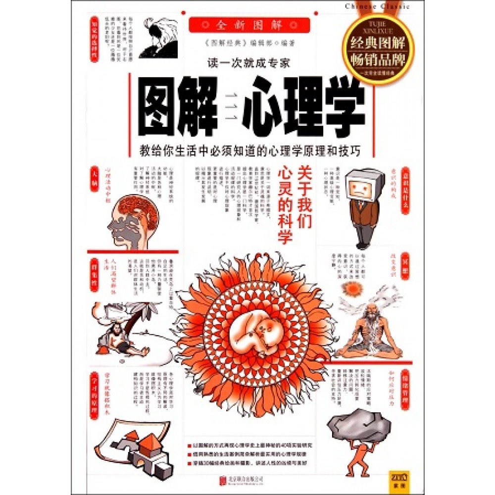 心理学漫长的过去/1-5 心理学短暂的历史/6-7 近现代心理学重要事件提要/8 自我概念:我是谁/10 编者序:我们想要的和我们需要的/12 本书阅读导航/18 第一章 认识心理学:发现内心世界的秘密 1. 心理学是什么:“心”的科学 22 2. 心理学的目标:我们生活得更好 24 3. 心理学的发展历程:从古希腊的哲学说起 26 4. 心理学之父冯特:第一所心理实验室的创建者 30 5. 心理学的分门:心理学遍布哪些领域 32 6. 当代心理学的观点:百家争鸣的多元化观点 34 7. 心理学书籍的阅读建议:入门的途径与钻研的准备 38 第二章 心理学的基础知识:了解心理学你必须知道的 1. 神经系统:心理产生的生理基础 42 2. 大脑:心理活动的中枢 44 3. 感觉:赖以生存和耽于声色的基础 46 4. 知觉:整合感觉“碎片”的胶水 48 5. 错觉:来自感觉的欺骗 50 6. 意识:深不可测的冰川 52 7. 学习:经验带给人们的变化 54 8. 记忆:大脑里的“自动取款机” 56 9. 遗忘:时间不是唯一原因 58 10. 思维:人类创造力的源泉 60 11. 语言:人类最重要的交流工具 62 12. 能力:个体差异的衡量标准 64 13. 动机:生活的动力和目标 66 14. 情绪:心理活动的“晴雨计” 68 15. 社会化:从自然人到社会人 70 第三章 心理学的方法:走进大师的实验室 1. 心理学与科学:心理学的方法简介 74 2. 实验法:寻找事物间的因果关系 76 3. 观察法:“偷拍”与记录 78 4. 调查法:问卷调查与访问调查 80 5. 测量法:种类繁多的心理测验 82 6. 个案法:医生的“问诊” 84 7. 面临挑战:蛊惑人心的偏见 86 8. 伦理问题:故意欺骗的正当性 88 9. 实验现场之旅:最精彩的10个心理学实验 90 第四章 人格界说:认识你自己 1. 面具的比喻:人格、性格、气质与命运 112 2. 人格的形成:遗传与环境对人格的影响 114 3. 气质的差异:血型和星座能测试性格吗 118 4. 特质的构成:人为什么有反常表现 122 5. 人格与吸引:你会爱上什么样的“另一半” 124 6. 量表测验:画出人格的剖面图 126 7. 投射测验:揭开人格的面具 128 8. 情境测验:真实环境下的人格测评 130 第五章 需要的多样化:选择最有效的激励方式 1. 动机与行为:动机对人们生活的影响 134 2. 需要层次论:人们多样化的需要和追求 136 3. 饮食心理学:“心”与“胃”,谁控制谁 138 4. 性行为的目的:性仅仅是生理需要吗 140 5. 群集性:人们渴望与他人交往的原因 142 6. 成就动机:职业生涯的推动力量 144 7. 动机、需要与激励:5种经典的激励理论 146 第六章 人的毕生发展:寻找人生最佳的发展模式 1. 人生的发展阶段:纵览生命的全过程 160 2. 婴儿的感知能力:新生儿对世界的触摸和识别 162 3. 幼儿的语言发展:倾听孩子的各种语言 164 4. 儿童的认知发展:儿童智力和能力的获得 166 5. 依恋关系:母子间的亲密关系 168 6. 青少年期的过渡:从叛逆到成熟的转折 170 7. 成人期的适应:迎战家庭和事业的双重压力 172 8. 直面衰老:更有活力地度过晚年 174 第七章 学习的原理:学什么、为什么学和怎样学 1. 学习是什么:对学习原理的不同解读 178 2. 强化作用:奖励与惩罚的效果 186 3. 练习曲线:学习成绩的变化规律 188 4. 迁移现象:新旧经验的相互影响 190 5. 学习潜力:心理因素的无限可能性 192 第八章 意识之谜 :你究竟在想什么 1. 意识的构成:古老而未定的话题 196 2. 无意识:被隐藏的观念和欲望 198 3. 原型:集体无意识的表现 200 4. 睡眠状态:睡眠时的心理活动 202 5. 梦境:心灵的剧场 204 6. 催眠:似睡非睡的意识状态 206 7. 冥想:获得内心的深度宁静 210 第九章 性心理学:人们对性、情感和婚姻的态度 1. 泛性论:弗洛伊德对性本能的强调 214 2. 性行为:性行为的唤起和反应过程 216 3. 性规范:社会对人类性行为的约束 218 4. 情色作品:是性侵犯的理论指导吗 220 5. 爱情:理解、扶持、陪伴和快乐 222 6. 婚姻:带来的是枷锁还是幸福 224 7. 同性恋者:需要尊重的特殊群体 226 第十章 人际关系:在社会中人与人该如何交往 1. 情境:影响人们的强大力量 230 2. 吸引:是什么让人们更靠近 232 3. 从众:生活中的随大溜现象 234 4. 说服:跨过心灵的“门槛” 236 5. 冲突:囚徒困境与公地悲剧 240 6. 沟通:人们之间的信息交流 242 7. 利他:不求回报地帮助他人 244 第十一章 情绪的功能:情绪是赢得健康的资本 1. 情绪感受:我们为什么会有各种情绪 250 2. 情绪调节:情绪的控制、改变和转换 252 3. 情绪智力:识别和掌控情绪的能力 256 4. 快乐中枢:刺激下丘脑会快乐吗 258 5. 职业倦怠:工作引起的厌倦情绪 260 6. 压力应对:人们对抗压力的方法 262 7. 心理健康:适应社会的身心平衡 266 第十二章 心理治疗:如何选择恰当的治疗方式 1. 心理治疗学派:治疗学派的主要类型 270 2. 精神分析疗法:解决潜意识里的冲突 272 3. 行为疗法:消除人们的不良行为 276 4. 人本疗法:摘掉面具、找回自我 278 5. 理情疗法:理性地面对情绪的困扰 280 6. 集体疗法:在社会情境中学会沟通 282 7. 电休克疗法:用微弱电流电击太阳穴 284 第十三章 图示测试:心理障碍的自我判断和专家建议 1. 心理异常:常见的心理障碍类型 288 2. 诊断图①:睡眠不佳 290 3. 诊断图②:噩梦连连 292 4. 诊断图③:非常在意细微琐事 294 5. 诊断图④:精神萎靡 298 6. 诊断图⑤:产后抑郁症 302 附 录 测量表:历史上最经典的14种心理测验 306