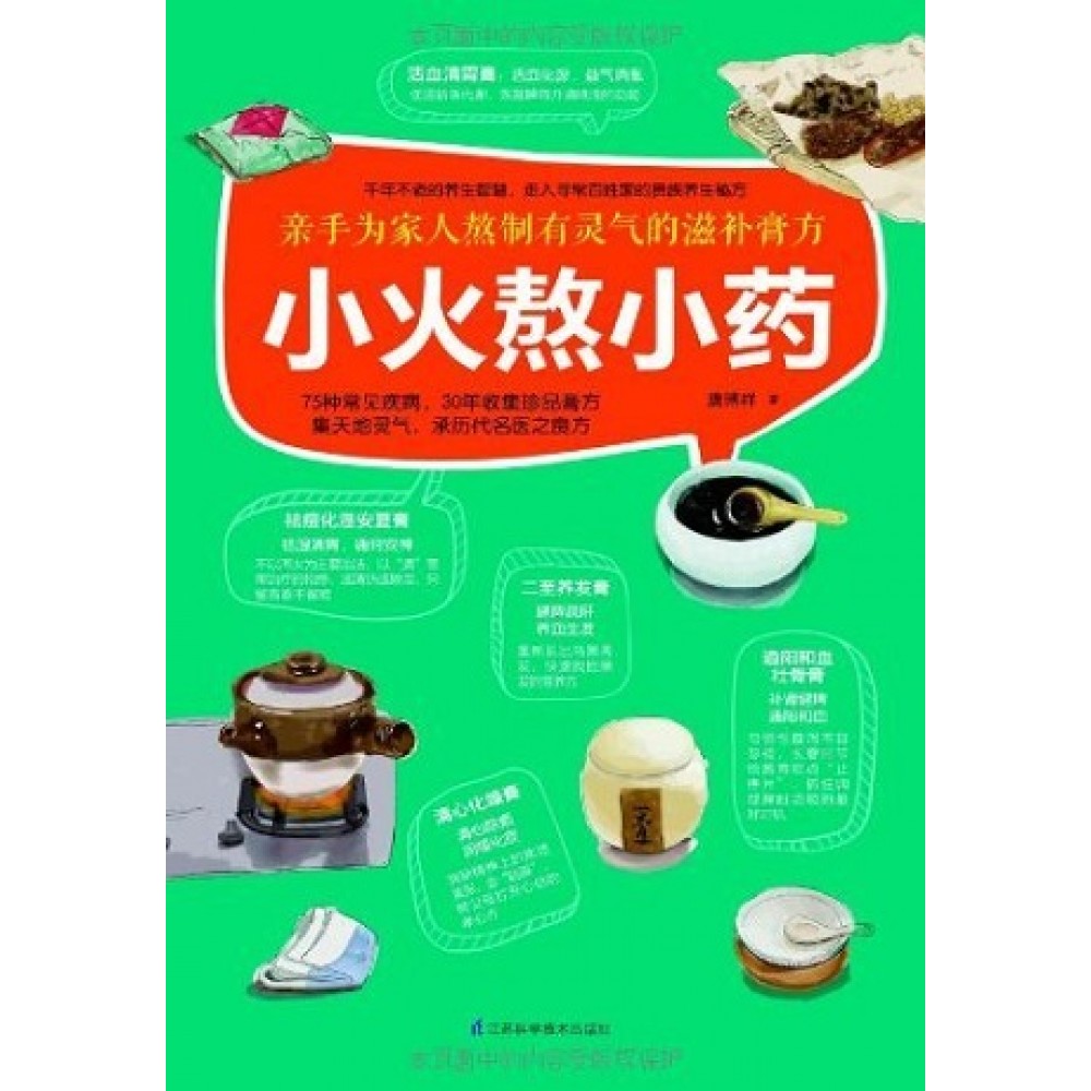 说到膏方,很多人都觉得闻所未闻。确实,这种最古老的滋补圣品从古至今都只是停留在少数人的视野中。在古代,只有王公贵族才有资格享用这种秘不外传的补品。经过一代代医家的尝试、研制以及整理,根据时间、地域、季节、年龄、体质的不同,分类精细、疗效精准的膏方逐渐成为了宫廷贵族的养生首选。《小火熬小药》将千年养生古方智慧与现代人体质特点完美结合。北京著名中医专家唐博祥针对现代人常见的亚健康、慢性病、妇科病、儿科病以及美容问题,提出“慢养”新主张,将其三十多年收集和研制的七十多道慢熬滋补珍品一一与读者分享,让膏方这种流传千年却鲜为人知的养生圣品为读者解除身体病痛,慢养出真正的健康。 祛痘化湿安夏膏:祛湿清胃,通窍安神。 不以泻火为主要治法,以“通”贯彻治疗的始终,或清热或除湿,只留青春不留痘。 清心化燥膏:清心除烦,润燥化痰 消除精神上的焦虑紧张,去“脏躁”,帮父母打开心结的孝心方。 通阳和血壮骨膏:补肾健脾,通阳和血 习惯性腹泻不容忽视,长夏时节给肠胃吃点“止疼片”,抓住调理脾脏功能的最好时机 健脾益肾祛湿膏:健脾气,运脾湿 补肾要先健脾,从肾来论治本病,但与心、肝、脾的密切联系不容忽视 参菊舒心膏:养血滋阴,清虚火 心慌胸闷、肩硬头痛都是不良姿势的后果,纠正坏习惯,由内而外治驼背最重要 解郁双花膏:疏肝解郁,理气和中 情志失调,病因多多,舒心是关键。多交流,多开导,心药中药双管齐下。 二至养发膏:健脾疏肝,养血生发 重新长出乌黑秀发,快速找回黑发的营养方 桂连养心膏:交通心肾,补脑安神 安稳入睡,助你安眠好觉到天明 活血清胃膏:活血化瘀,益气消胀 促进新陈代谢,恢复脾胃升清降浊的功能