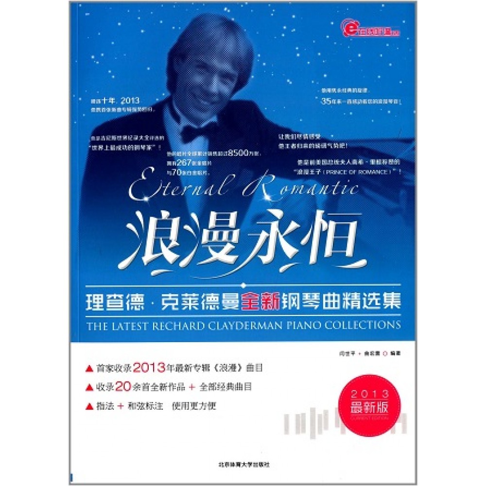 《浪漫永恒:理查德克莱德曼全新钢琴曲精选集》是法国钢琴演奏家理查德·克莱德曼的钢琴作品精选集。收录了克莱德曼近年最新和全部最经典曲目。值得一提的是2013年克莱德曼新发行了一张专辑《浪漫》,《浪漫永恒:理查德克莱德曼全新钢琴曲精选集》精选了4首作品,加入书中,并且每一首曲目都增加了指法与和弦标记,使用更方便。