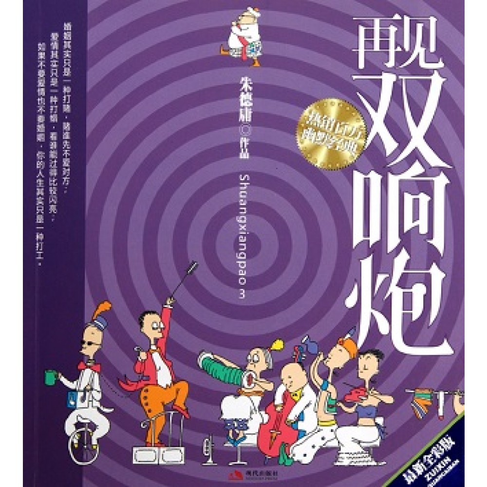 自序 婚姻是一出喜剧 朱德庸 有人咒骂婚姻,有人膜拜婚姻。相信一定有不少人想知道画了多年婚姻问题的我,对婚姻的看法。其实,婚姻不论好坏,都是一出喜剧。唯一不同的,美满的婚姻是让自己看笑话,不美满的婚姻是让别人看笑话。──基本上,将两个背景完全不相同的个体借由爱情组合在一起,就有其荒谬、发噱的成分存在。 “ 双响炮” 创作至今, 屈指已有四年余, 画场由《中国时报》刊载数年后转移至《中时晚报》。原以为将题材绘尽、灵感枯竭,没想到却又进入一重倒吃甘蔗的新境界──不但点子源源不断, 对画中人物个性更能精确掌握。有时手执画笔、独坐窗前,竟觉得男女主角仿佛鼻息咻咻,穿梭在自己身边。朋友经常笑我一言一行都带上了“双响炮”的气息,真不知该引以为荣,还是引以为耻。更不乏朋友认为炮声即我的生活写照,着实叫人哭笑不得。我要说的是,“双响炮”与我无关,它的生命是读者赋予的,不同的读者在不同的画幅里照见了一面面不同的镜子。 所以,我要向无数读者,以及台北这个荒谬城市深致谢意,是这些,让“双响炮”响了这么久。