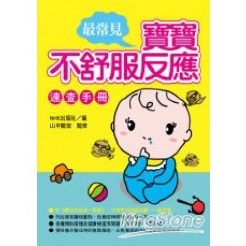PART1從症狀來清楚查對 嬰幼兒疾病簡明一覽表 PART2症狀別的護理重點 發燒 咳嗽 腹瀉‧嘔吐 出疹 痙攣 眼睛問題 耳朵問題 鼻子問題 口腔問題 處方藥 PART3嬰兒疾病百科 ▇傳染性疾病 感冒症候群 流行性感冒 突發性出疹 水痘 麻疹 德國麻疹 流行性腮腺炎 手口足病 皰疹性咽峽炎 咽喉結膜熱 傳染性紅斑 百日咳 鏈球菌傳染 ▇新生兒的疾病 新生兒黃疸 母乳性黃疸 新生兒粉刺 臍肉芽腫‧臍炎 ▇呼吸系統疾病 急性氣管炎 氣喘型支氣管炎 細支氣管炎 肺炎 黴漿菌肺炎 哮吼症 結核病 ▇心臟‧血管的疾病 心室中膈缺損 心房間隔缺損 開放性動脈導管 川崎病 ▇消化系統疾病 急性腸胃炎 食物中毒 輪狀病毒腸胃炎 腹股溝疝氣 臍疝氣 腸套疊 賁門鬆弛…. 肥厚性幽門狹窄症 ▇肝臟疾病 肝炎 ▇腦‧神經疾病 熱性痙攣 憤怒痙攣 癲癇 腦膜炎 腦炎 ▇過敏性疾病 氣喘 異位性皮膚炎 過敏性鼻炎 食物過敏 ▇腎臟‧泌尿道‧臀部的疾病 泌尿道感染 隱睪症 陰囊水腫 肛門膿瘍 包皮龜頭炎 ▇骨‧關節‧肌肉的疾病 發展性髖關節發育不良 斜頸 牽拉肘 ▇眼睛的疾病 先天性鼻淚管阻塞 結膜炎 斜視 弱視 睫毛倒插 針眼(麥粒腫) ▇耳‧鼻‧喉嚨的疾病 中耳炎 慢性中耳炎 小兒中耳積水 重聽 副鼻腔炎 咽喉炎 扁桃腺炎 ▇口腔疾病 鵝口瘡 單純皰疹 口內炎 ▇皮膚疾病 接觸性皮膚炎 尿布疹 念珠菌皮膚炎 白癬 黃水瘡 汗疹(痱子) 脂漏性皮膚炎….蕁麻疹 疣 水疣(傳染性軟疣) 痣 血管瘤 ▇血液疾病 缺鐵性貧血 PART4急救措施 窒息 溺水 誤飲 摔倒‧跌落 燒傷 中暑 四肢夾傷 流血 眼睛‧耳朵‧鼻子內有異物 流鼻血 蟲咬 脫臼 骨折 PART5預防接種的基本知識 PART6嬰幼兒健康檢查的基本知識