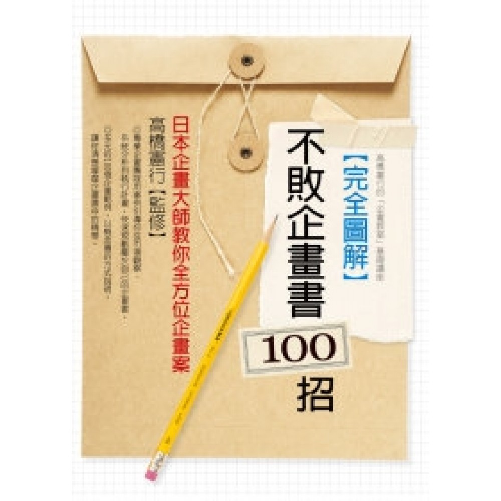 本書收錄了各種形態的企劃書。 撰寫企劃書的執筆者是被稱為「企劃顧問(Planning Adviser)」的企劃專業團隊。本書所收錄的100篇企劃書皆是上述企劃顧問親筆撰寫而成。他們將本身高度的企業經營理念,簡潔地濃縮於單頁企劃書之「概念圖」上,呈現嶄新的經營概念。 所謂的企劃顧問,是本企劃教室針對有能力的人士所頒發的民間證照。目前,企劃教室針對成績優秀的結業生頒予此證照,使得他們成為獨立的專業人員,並以專家身份活躍於各企業。 此外,在這些企劃顧問當中,當然也包含與製作企劃書相關的教育專家「企劃講師」。若能有系統地擬定企劃,就表示能有系統地掌握整體事業。由於經營方面所要求的條件日趨複雜,因此,在實際經營上則更需要系統化地掌握整體事業。 目前的經營環境,已經不是只要有一點創意和些許文筆的企劃書,就能輕鬆應付的簡單經營模式。在現今這個高度成長的時代,那種只要製造商品就能暢銷的時代已經成為歷史。
