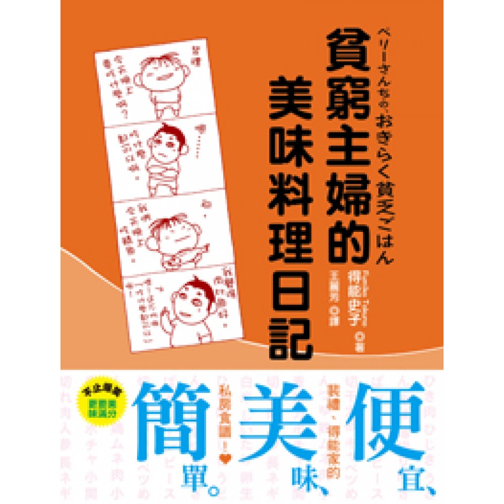 再省,也要吃得很五星級! 逗趣貧窮主婦得能史子,私房料理物超所值大公開! 食譜+漫畫 加倍可口! 30道省錢食譜,教你用最平常的食材,做出美味絲毫不減的絕妙料理! ‧薄肉片變身豪華牛排! ‧吃法多變的萬用辣味肉末! ‧吃過都說讚的炒烏龍麵! 跟著得能發揮料理創意,你也能輕鬆變身為廚藝達人! 除了會畫畫、會搞笑,原來得能還是個隱藏版的料理高手?! 從學生時期就開始學做菜的得能,在節約的生活考驗,以及大食量的老公裴禮的磨練下,練就了一身料理好手藝。 不過,再厲害有時還是會踢到鐵板! 都晚上12點了,視肉如命的老公竟然突然說想大口吃牛排?!要不就是突發奇想說要吃什麼連聽都沒聽過的“Chili con carne”(墨西哥辣肉醬)?! 這要得能如何招架應變啊‧‧‧ 這些都還不是得能的最大料理挑戰,和紐西蘭老公之間飲食文化的差異,才是真的讓她經常感覺英雄無用武之地的最大考驗。 該怎麼讓外國老公瞭解日本人對於「白飯等級不同,美味程度也不一樣」的堅持呢? 炒烏龍麵拌生雞蛋明明就是美味的極至享受,裴禮卻無法置信、一臉嫌惡! 繼搞笑貧窮生活之後,得能史子這次將一舉公開她和老公之間的「料理生活」,看她如何利用拮据的伙食費迎戰異國老公美食難題。 請一起來跟得能邊笑邊學料理吧! 〈讀者的回應與推薦〉 ‧「在大地震災後的現今,我想以不浪費食材的精神,嘗試書中的每一道料理。因為得能說的 對:『食材的價格和餐桌的幸福指數並不是成正比的。』」(日本讀者 滿開月銀) ‧「得能的生活每天過得超有活力、超正面,和老公裴禮之間的相處也很開心。讀起來讓人覺 得非常放鬆、愉快。」(日本讀者 KOCYAMURAI) ‧「如果可以跟得能當好朋友就太棒了!」(日本讀者 KOMIKUKUIN)
