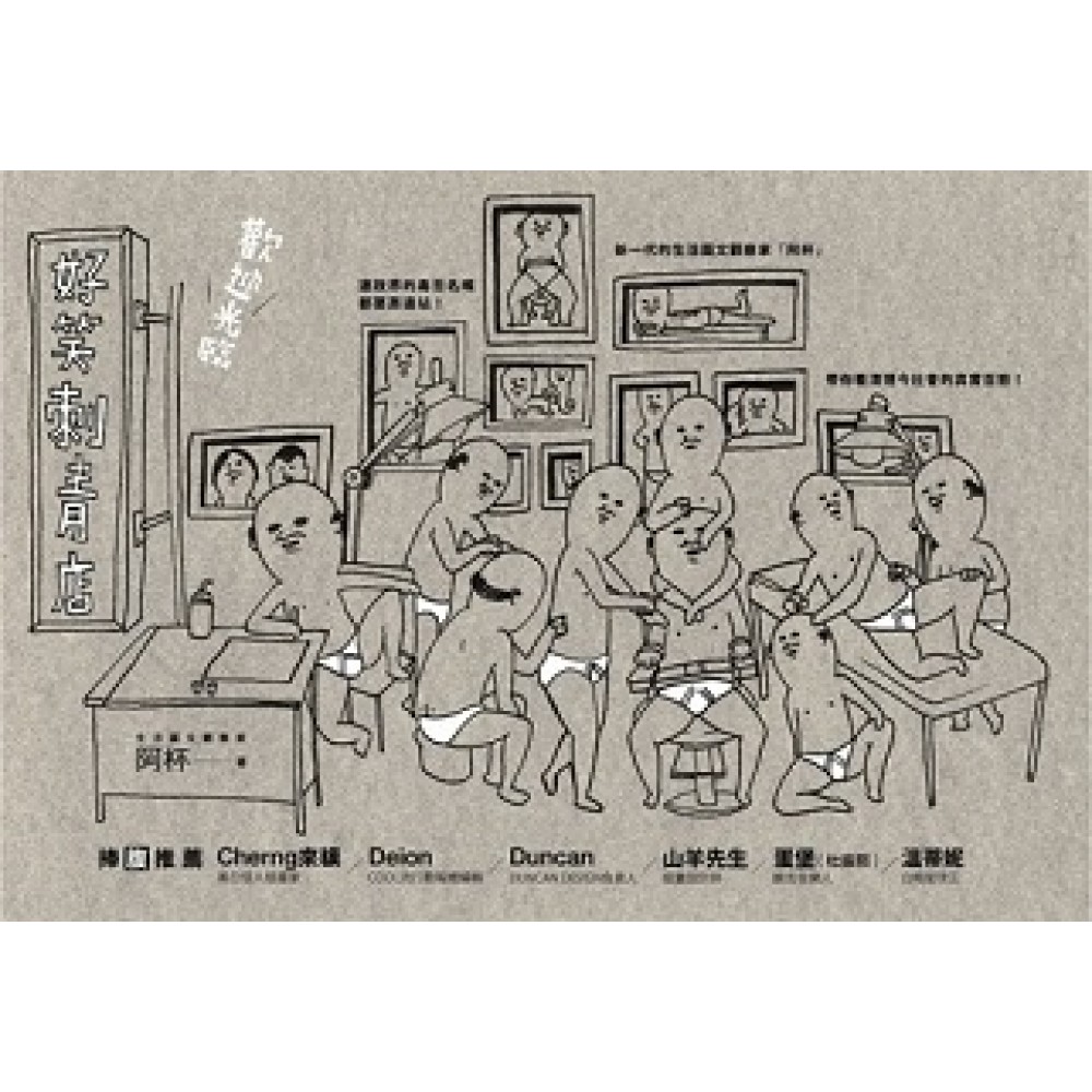 阿杯,勇於嘗試改革創新,他是插畫界的一股清流。 阿杯,從不盲目追求流行,他也是潮流界的精神領袖。 阿杯,致力改善網路亂象,他更是臉書界的奇葩指標。 江湖中人稱「阿杯」的傳奇性人物,以簡單的手繪黑白插畫線稿,創作出許多反應現實生活中的角色。他不僅幫許多男男女女嗆聲發文,更畫出許多市井小民們的心聲。原本只是在上班之餘隨筆塗鴉的畫作,現在卻成為了許多粉絲們每天拜讀的人氣專頁,阿杯的畫風魅力絕不是用文字說明就可以實際感受的。 ◎【好笑刺青店】粉絲專頁:www.facebook.com/Fxxkingtattoo