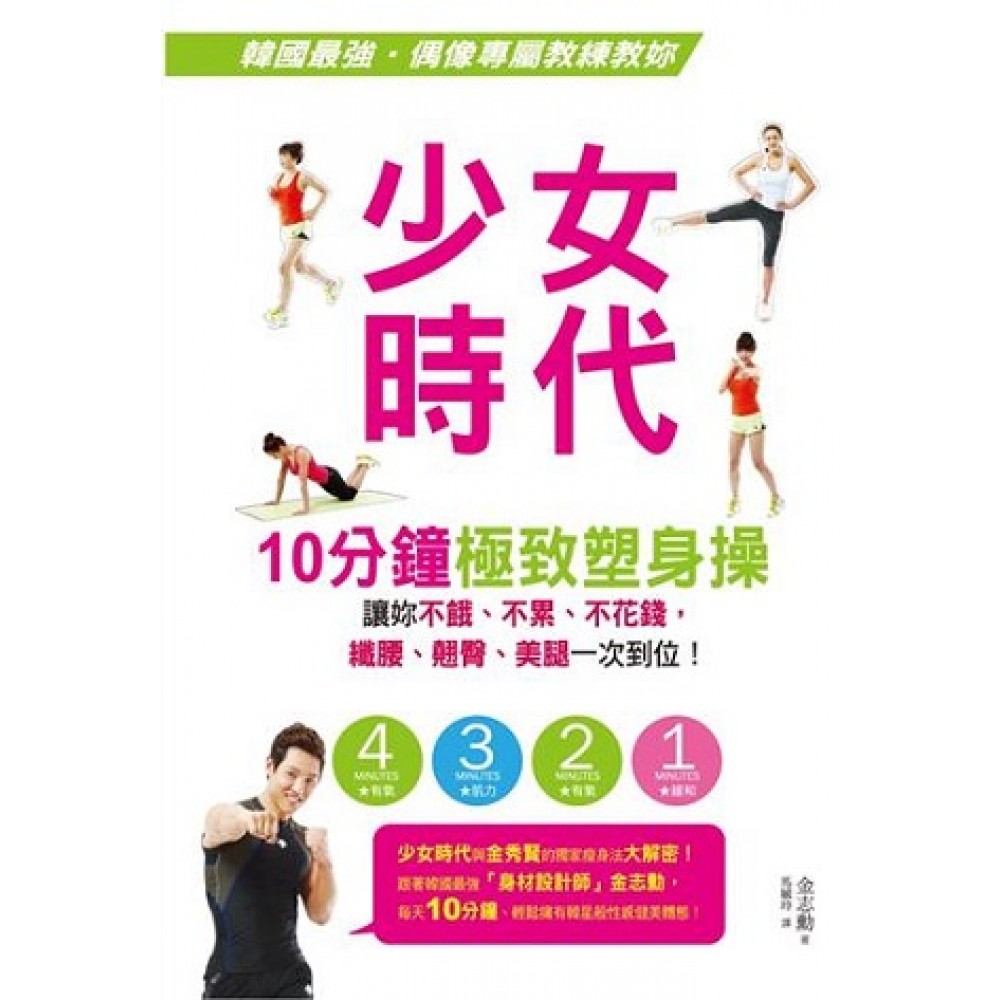 少女時代、金秀賢的塑身訓練都靠他!韓國最強「身材設計師」金志勳教練親自操刀,敎妳每天10分鐘、在家就能做的極效塑身操,讓妳不必挨餓受累,輕鬆擁有韓星般性感健美體態! ◆為什麼藝人瘦身又快又簡單?差別就在於專屬的瘦身教練!獨創高強度有氧塑身操,4、3、2、1,讓妳變身少女時代! 4 MINUTES★熱身提升心搏數,培養腿部持久力&肩、手、背肌有氧肌力! 3 MINUTES★半蹲+伏地挺身運動,提升大腿前後、臀部與上半身肌肉高強度肌力! 2 MINUTES★結合拳擊動作+步伐,有效減去蝴蝶袖! 1 MINUTE★不完全休息運動,緩解下半身肌肉緊繃感,使體脂肪能燃燒到最後! ◆好身材跟衣服一樣可以訂做!正確減重觀念+決心,妳可以比藝人更美!重點美體部位個別鍛鍊,學習藝人們自傲的獨家塑身法! ■趙汝貞無暇美背的秘密 ■申世炅的美胸與翹臀鍛鍊法 ■金素妍緊實手臂線雕塑法 ■韓智慧這樣練出腿部線條與性感鎖骨線 ■韓可露的全方位生活與飲食自我管理 ◆針對生活型態朝九晚五的上班族女性,一次解決妳的身材困擾! ■揮別下半身肥胖!13款骨盤操矯正妳因久坐、坐姿不良引起的骨盤歪斜,骨盤正了、循環就順暢! ■橘皮組織不要來!活絡平常難以運動到的腹部、大腿肌肉,預防橘皮生成! ■消除雙腿浮腫!以半身浴促進新陳代謝、排除體內多餘鹽份,調整體內平衡! ◆邊吃邊瘦!韓星們愛用的熱量限定健康菜單&低卡食譜大公開 ■好身材藝人都這樣吃!準備輕鬆且做法簡易的低熱量菜單揭秘! ■減重飲食Q&A,解除妳對減重期間進食的各種疑惑,吃得更放心! ■一目了然食物熱量表,讓妳對各式減重食材更了解、更能掌握飲食分寸! ■一週減重建議菜單,照著吃、快快瘦! ◆貼心收錄!減重之路上的溫馨陪伴 ■「易瘦度」&骨盤自我檢測表格,確實掌握自己身心狀況! ■一週&一個月減重日記表格,仔細紀錄飲食及運動狀況超方便!