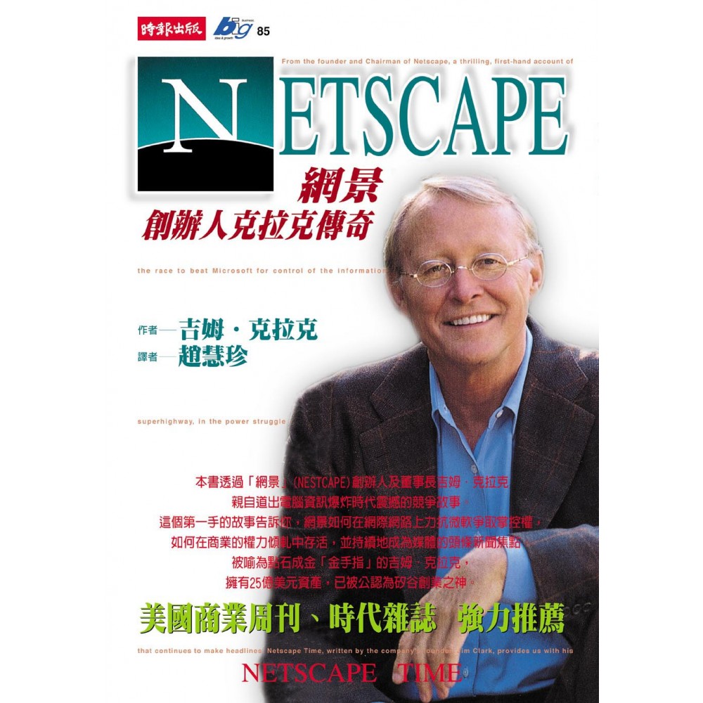 ※美國商業周刊、時代雜誌 強力推薦 本書出自「網景」的創辦人與董事長口中,娓娓道來電腦資訊爆炸時代一個震憾的競爭故事,這個第一手的故事不僅敘述著在網際網路上如何力抗「微軟」以爭取掌控權,又如何在商業的權力傾軋中存活,並持續地成為媒體的頭條新聞焦點。 《Netscape》事實上與詹姆士.瓦森的代表作《雙螺旋》有異曲同工之妙。《雙螺旋》不僅告訴讀者DNA的發現,同時也說明了廿世紀最偉大的科學革命之一是如何發生的; 而《Netscape》則是透過吉姆.克拉克的心路歷程,引領讀者回顧網際網路世界的形成史。吉姆.克拉克透露的是一個簡單的網路瀏覽器發明,卻在人類通訊上造成革命性巨變的故事。 一方面受到比爾.蓋茲的啟發,另一方面又因著一個慾望驅策,曾在史丹佛大學任教的吉姆.克拉克1994年創設「網景」通訊公司,躍身成為矽谷戰場的一名鬥士。「網景」是吉姆.克拉克邀請當時年僅廿三歲的電腦天才馬克.安德森、艾瑞克.賓納及五位伊利諾大學的大學生聯手開發出來的一片網路天地,而這個大膽的新創事業竟也在「電腦巨人」微軟的生產線背後安全降落。 《Netscape》從1993年戲劇性地揭開序幕,「馬賽克」瀏覽器的發明、管理大師巴克斯岱爾的聘雇、