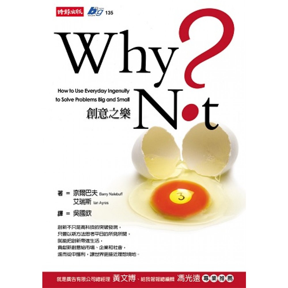 Why Not讓腦袋轉個彎?讓創意延伸智慧,衍生財富! 這是一本以創意有目標解決問題的書,教導你如何以新方法思考日常所見所為。這是一個廣大的創意致富市場── 為 何 不 把萵苣洗過再賣:洗萵苣是一種簡易的低科技,卻創造出數十億美元的生意;冷凍、切碎的洋蔥節省時間和眼淚,帶來無限商機。 為 何 不 讓牙刷 360 度旋轉:得自旋轉棒棒糖的技術靈感,一支五美元的旋轉電動牙刷,締造四億七千五百萬的利潤。 為 何 不 將限制級影片也合法賣給青少年:ClearPlay利用指南資料庫功能,讓讀者可選擇輔導級或限制級,會費每月十美元。 你想不想造一個更好的捕鼠器?或發明一種更理想的抵押貸款、減少青少年駕車意外,或杜絕垃圾電子郵件?你想不想以創造性的新主意挑戰現狀——針對你的醫療制度、對國稅局,或你的公司。 許多人以為這種事應該留給「專家」,但奈爾巴夫和艾瑞斯證明了創新的力量存在所有人身上。這本令人激賞的書把羅伯‧甘迺迪的號召轉化為一套架構,以發掘可用來改變我們工作、生活與管理的創意。 《Why Not》是尋找新企業思維、解決具體問題、讓世界更接近理想境地的必讀書籍。理想主義?是的。不切實際?非也。 奈爾巴夫和艾瑞斯把大半生涯用在解決問題和貢獻新創意給市場——從保護住宅價值的保險到味道像真茶的瓶裝冰茶誠實茶(Honest Tea)。在《Why Not》裡,他們把創新帶進生活,展示了創新不只是高科技的突破發現,也是日常的創意。 《Why Not》告訴我們,如何以新方法思考我們日常所見和所做的事。奈爾巴夫和艾瑞斯列舉出簡單的創新方法以解決舊有的問題,和運用既有的方法以解決新問題。他們以企業經營、法律和日常生活中刺激人們深思的例子,來闡明他們的論點。