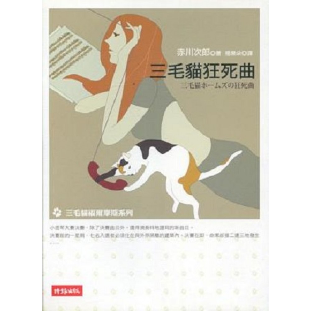 小提琴大賽決賽入圍者,除了決賽的可能曲目外,還得演奏特地為了決賽而寫的新曲目。決賽前的一星期,七名入選者必須住在與外界隔離的建築內。決賽在即,命案卻接二連三地發生…… 目錄: 調音 第一樂章 從容的快板 第二樂章 如歌的慢板 第三樂章 活潑的快板 第四樂章 終曲 安可曲 害怕女性、看到血就想昏倒的片山刑警,面對一樁樁匪夷所思的疑案,還是硬著頭皮去破解每個蛛絲馬跡,優雅不語的三毛貓福爾摩斯,擁有非常人的解謎力,能將離奇的凶案謎團謎團一針見血地破解,讓主人片山刑警得以將凶手繩之以法。