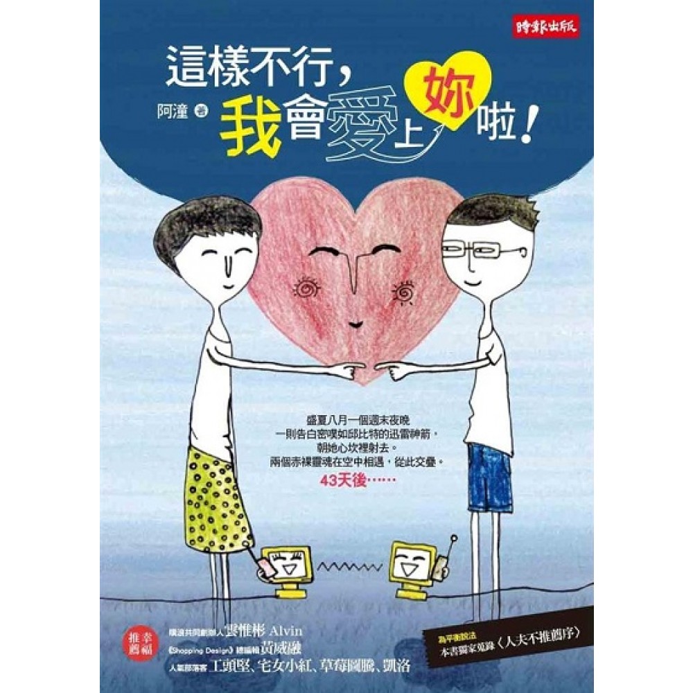 網民傳頌 最浪漫的愛情傳奇 當 愛情君臨 青春期純愛復辟 城市泥灰 在情人眼底 亦是迷濛瑰麗的玫瑰色 盛夏八月一個週末夜晚 人夫一則告白密噗如邱比特的迅雷神箭,朝阿潼心坎裡射去。 兩個赤裸靈魂在空中相遇,從此交疊。 43天後…… 都說愛情來了,神也擋不住。 在貌似亂入的告白後,禁不住人夫的誠懇要求,兩人終於相見。 見面後一個吻改變彼此的世界。 四十三天後,一如眾人所知,阿潼與人夫閃電結婚。 「網路美女作家阿潼 見他一天就嫁了」的新聞也在網路發酵,造成不小騷動。 從此,兩人過著悲傷與難過只剩二分之一,滿足和快樂卻雙倍暴增的幸福生活。 阿潼婚後 最坦然的直白 「即使未婚,也不能減損每個女人的價值。 一個人的幸福再微小,也比兩個人不幸福來得好。」 首度披露人夫不為人知的追妻密噗! 曖昧對話一刀未剪! 「潼,這樣不行,我會愛上妳啦!」 我不記得究竟隔了多久才回覆這則噗。 我非常確定的是︰男人來了!!(顯示為摩拳擦掌模式) 不過很奇怪,這個亂入的告白事件並沒有讓我的內心如蓮蓬頭噴灑出來的水柱般澎湃, 可以說是相當平靜而理所當然地接受了這一切。 ……………………………………………………………………………………………………… 「網路真是害人不淺啊!」 「怎麼說?」 「它讓我們能貼近彼此靈魂的最深處,卻又覺得彼此其實是陌生人。」 「是這樣說沒錯。但我哪有跟你貼近靈魂最深處啊? ………………………………………………………………………………………………………婚後,夫妻倆基本上和諧甜蜜。 除了偶有意見不同…… 像是為了洗碗這款事…… 真槍實彈的走火情節……! 流理台的水龍頭仍不停滴下殘餘的水珠, 滴答答地落在那堆油膩髒污的碗盤上。 我無法忍受它們依然靜僵不動。 ……於是我在噗浪上發動大軍偷襲人夫。 不多久,在人夫的噗裡,出現了成群的義勇軍朝人夫萬箭齊發……