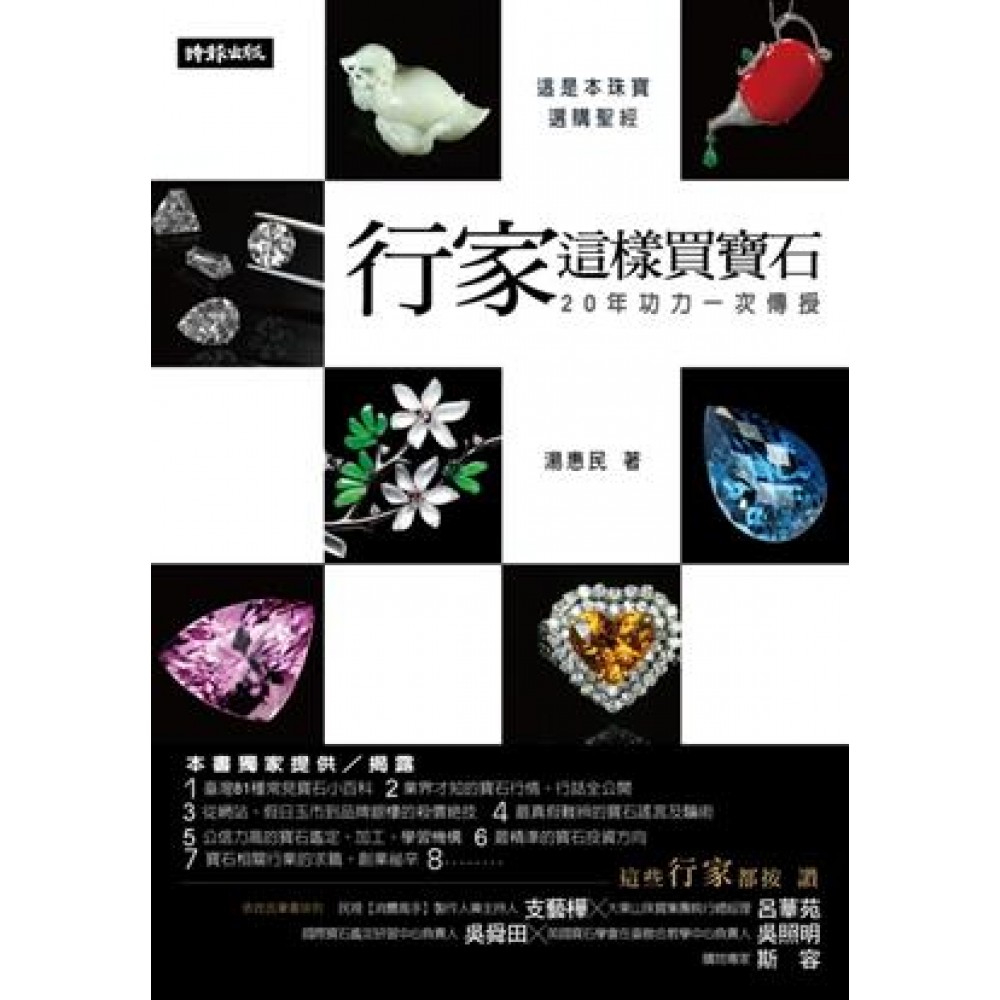 吳舜田推薦序 吳照明推薦序 自序 【入門篇】 ■選購寶石的通則 看顏色,越深、越飽和、越均勻、越鮮豔越好 看切工,火光越強越好 看內含物與裂紋,越乾淨越貴 看重量大小,越大越稀有 看產地,更要看每一顆寶石自身的條件! ■購買寶石心態大解析 戴黃水晶或黃寶石會招財? 戴粉晶可以招桃花? 水晶可以增加能量?戴天珠可改善健康? 戴翡翠可以避邪? 買寶石可以增值? 買寶石方便脫手嗎? ■寶石瑕疵等級介紹 ■切工好壞介紹 ■優化處理介紹 紅藍寶石的優化處理 鑽石的輻射處理 玉(翡翠)的優化處理 其他寶石的優化處理 優化過的寶石比天然的便宜 ■出國旅遊買珠寶要注意! ■怕被騙,有證書就好? GIA鑽石鑑定書怎麼解讀? 臺灣珠寶鑑定機構 ■基本工具使用介紹 【出門篇】 ■歷久彌新──寶石界的五大天王 鑽石 Diamond 綠柱石 Beryl 祖母綠(綠寶石) Emerald 海水藍寶 Aquamarine 摩根石 Morganite 黃金綠柱石 Gold Beryl 剛玉 Corundum 紅寶石 Ruby 藍寶石 Sapphire 粉剛、紫剛 Pink,Purple Sapphire 黃寶石 Yellow Sapphire 蓮花剛玉 Padparadscha Sapphire 變色剛玉 Color-Change Corundum 星光剛玉 Asterism Corundum 翡翠(緬甸玉、輝玉、硬玉) Jadeite 金綠玉寶石 Chrysoberyl 金綠玉貓眼 Cat's-eye 亞歷山大石 Alexandrite 亞歷山大貓眼石 Cat's-eye Alexandrite ■十五大流行寶石 碧璽(電氣石) Tourmaline 紅寶碧璽 Rubellite 綠碧璽 Verdelite 鉻綠碧璽 Chrome Tourmaline 黃碧璽 Dravite 藍碧璽 Indicolite 黑碧璽 Schorl 碧璽貓眼 Cat's-eye Tourmaline 雙色碧璽 Bi-Color Tourmaline 西瓜碧璽 Watermelon Tourmaline 碧璽變石Alexandrite Tourmaline 丹泉石 Tanzanite 水晶Crystal ‧粗晶石英 白水晶 Rock Crystal 紫水晶 Amethyst 黃水晶 Citrine 煙水晶 Smoky Quarts 玫瑰石英 Rose Quarts 砂金石 Aventurine ‧微晶石英 瑪瑙 Agate 石髓(玉髓) Chalcedony 虎眼石 Tiger's Eye 碧玉 Jasper 燧石 Chert 矽化木 蛋白石(歐泊石) Opal 石榴石 Granet ‧鎂鋁榴石-鐵鋁榴石-錳鋁榴石系列 鎂鋁榴石 Pyrope 鐵鋁榴石 Almandite 錳鋁榴石 Spessartite ‧鈣鋁榴石-鈣鐵榴石-鈣鉻榴石系列 鈣鋁榴石 Grossularite 沙弗來(隨我來) Tsavorite 水鈣鋁榴石 Hydrogrossular 黑松石 Hessonite 變色石榴石 Alexandrite Grossularite 鈣鐵榴石 Andradite 翠榴石 Demantoid 鈣鉻榴石 Uvarovite 尖晶石 Spinel 珍珠(真珠) Pearl 淡水珠 海水珠 南洋珠 黑珍珠 長石 Feldspar 月長石(冰長石) Moon Stone 日長石(奧長石) Sun Stone,Oligoclase 拉長石 Labradorite 天河石 Amazonite 中性長石 Andesine 琥珀 Amber 拓帕石(黃玉) Topaz 風信子(鋯石) Zircon 鋰輝石 Spodumene 葡萄石 Prehnite 榍石 Sphene 橄欖石 Peridot ■不可不知的寶石 藍晶石 Kyanite 堇青石 Iolite, Cordierite 磷灰石 Apatite 蛇紋石 Serpentine 菱錳礦 Rhodochrosite 舒俱徠石 Sugilite 天珠 Tibet Beads 孔雀石 Malachite 土耳其石 Turquoise 青金岩Lapis-Lazuli 螢石(冷翡翠) Fluorite 閃鋅礦 Sphalerite 紅柱石 Andalusite 透輝石 Diopside ■臺灣特產 臺灣玉 Nephrite 臺灣藍寶 Chrysocolla 玫瑰石 Rhodonite 文石 Aragonite 珊瑚 Coral 金 Gold ■最值得推薦的蘇澳-花蓮寶石、礦物休閒、地質溫泉之旅 【實戰篇】 ■實用行 省錢大作戰之行話大公開 必備行頭:名片 殺價小撇步 ■進階行 名牌珠寶大補帖:晶華酒店之旅 打開珠寶之窗:香港珠寶展 精品珠寶大搜查:蘇富比、佳士得拍賣會預展 ■進修行 臺灣大專院校珠寶金工相關科系 國外珠寶學院在臺珠寶教育機構 社區大學寶石鑑賞課程 珠寶雜誌 【附 錄】 ■學珠寶的就業市場 自己或合夥創業 珠寶鑑定與教學 開銀樓或珠寶店 經營網路拍賣 在飯店或百貨公司設立專櫃 在夜市、菜市場或熱鬧商圈擺攤 在公家單位或者企業團體福利社擺攤 在全臺各地玉市擺攤 在全臺跳蚤二手市場擺攤 跑街(銀樓與珠寶店) 做電視購物 賣親朋好友 複合式經營 投資型 求職 連鎖珠寶店、銀樓、百貨公司珠寶專櫃與水晶礦石及飾品批發店 連鎖當鋪 珠寶鑑定所或教學中心 大專院校珠寶技術相關科系 電視購物台講師 珠寶店或鑄模場業務