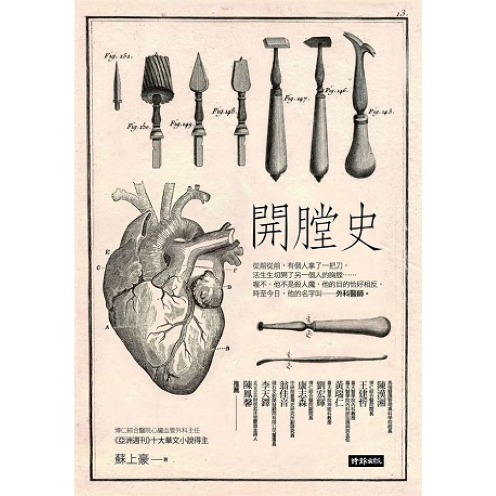 Part 1 故事 Old Tales 外科醫師的祖師爺 人體的構造 上古開顱術 華佗之外的中醫外科 誰是麻醉第一人 人道的外科治療 整形外科之父 第一堂解剖課 不輸血的開心手術 記得先洗手 Part 2 發現 Discovery 盤尼西林的勵志故事 香豆素軼事 生髮水與威而鋼 誤打誤撞鐵氟龍 煞車線與下肢靜脈曲張 達文西的機器人 女明星與消毒 亂槍打樹 縫線是葷的還是素的 Part 3 心跳 Heartbeats 換心的旅程 德國的麻煩 靠運氣的主動脈氣球幫浦 過氣的醫龍 最新療法其實不新 Part 4 眾生 Beings 初體驗 故事的真相 高醫師的椅子 加護病房的鬼話連篇 廣告效應 帶有歧視的病名 捨與得 外科醫師的反省 手術同意書 最後一哩路 論健保 醫師的預言