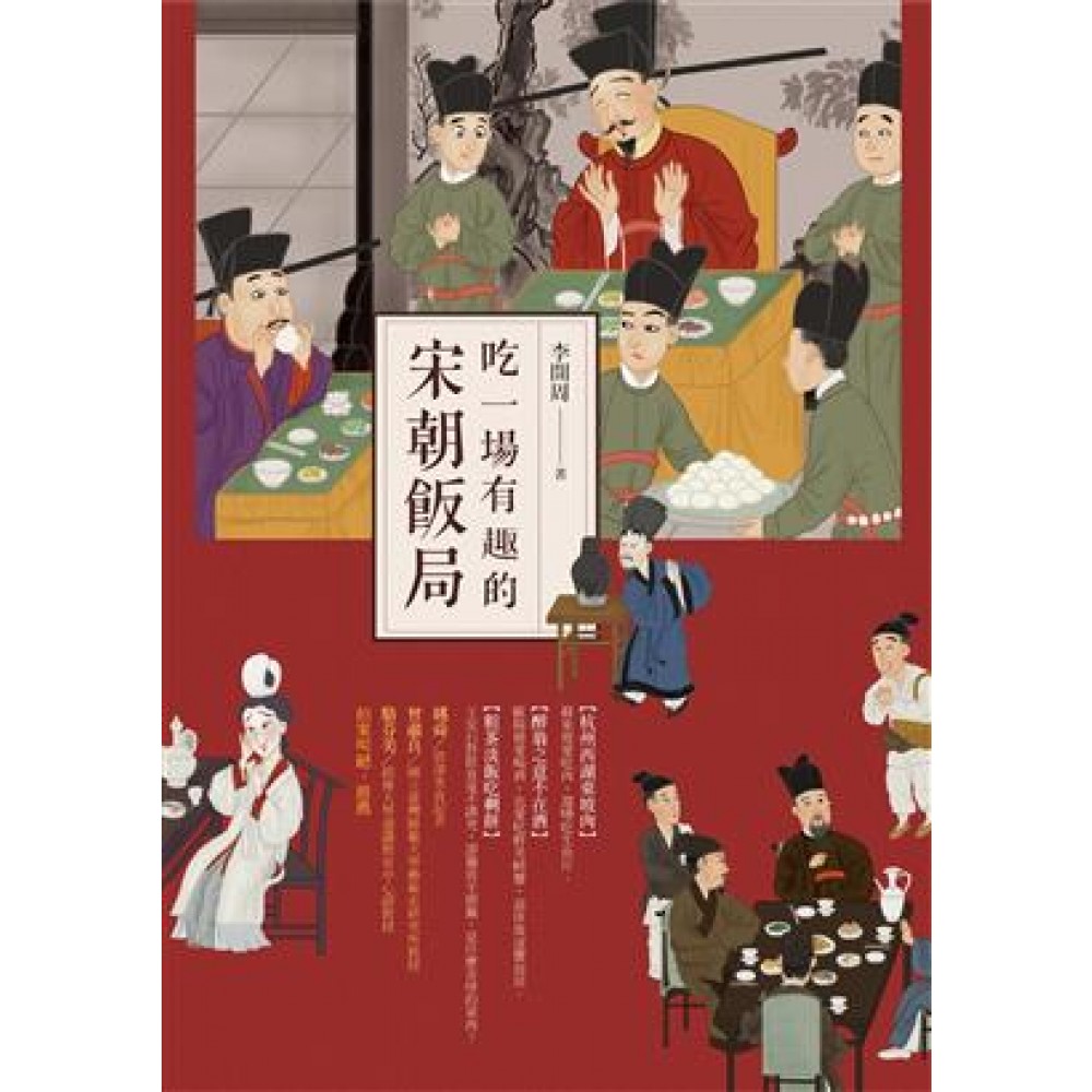 開場白:饕客應該去宋朝 第一章 穿越須知 每天只吃兩頓飯 宋朝不流行午餐 不早的早餐 宋朝Tapas 武大郎不賣燒餅 那些在宋朝吃不到的美食 西瓜東下 麻辣宋朝 宋朝人的飯量 飯後如何刷牙 第二章 赴宴必讀 潘金蓮的座位 東家和西賓 一杯酒換兩道菜,法式西餐STYLE 主食可以下酒 內褲和飯局 從分餐到共餐 不參加鄉飲,不許你參加科舉 太學生請客 吃飯成為政治學習 公款吃喝,務必到場 中央機關小食堂 第三章 去宋朝吃麵食 麵食如何傳到南方 饅頭不是饅頭,包子不是包子 能吃的備胎 去王安石家吃胡餅 冬餛飩,年餺飥 蝌蚪粉 夾包饃 槐花和麥飯 第四章 肉食與海鮮 望羊興歎 軟羊 黃蓉的刀工 君子改庖廚 肥肉才好吃 水晶膾 假貨假肉 生吃的習慣 吃不吃狗肉 從肝膋到肝籤 粵菜嚇煞人 白煮和本味 蟹的吃法 方生勿折 鮑魚之肆 第五章 飲食器具 宋朝人不愛瓷器 玻璃碗 勺子和筷子 宋高宗的公筷 御茶床 插山和食屏 仰塵和蓋碗 酒杯二三事 宋朝茶道入門 茶上寫詩 大宋熱水瓶 第六章 象形食品 條子來了 象形食品 網油卷,羊頭籤 夾子和音樂 滴酥鮑螺 歡喜團 仿葷之素 插食 第七章 飲料加美酒 大宋冷飲店 渴水和熟水 迎客茶,滾蛋湯 蘇東坡的雞尾酒 玉冰燒,羊羔酒 雪花酒 藍尾酒 蘸甲 宋朝人的酒量 一斤宋酒多少錢 第八章 宋朝酒令入門 觥籌交錯 九射格 划拳和五行 投壺的規矩 酒席上的管弦 邊吃邊跳 燕射 第九章 大內飲食探秘 皇帝一天吃幾餐 大宋皇帝吃西餐 御廚看人下菜碟 鴛鴦五珍膾,死前還想吃一口 致語和口號 皇家宴席不過如此 皇家的筷子 挑菜宴 貴妃醉酒 第十章 如何在宋朝開飯店 正店和腳店 官庫和拍戶 加盟和自立門戶 飯店裝修指南 侍從比廚師重要 看菜吊胃口 撲賣 買撲 共生關係 四司六局 去茶樓喝醬湯 附錄 宋朝飲食簡明詞典
